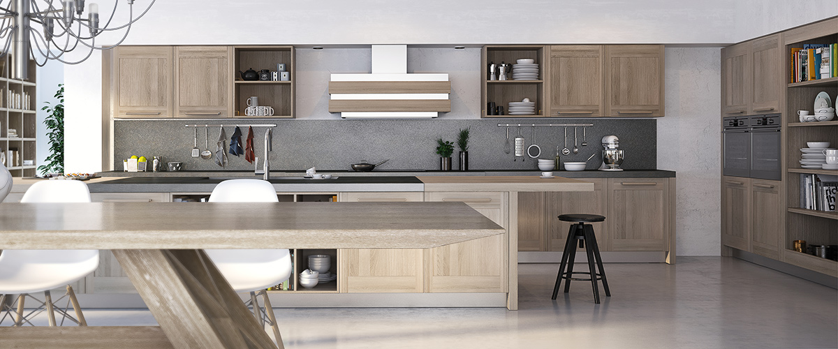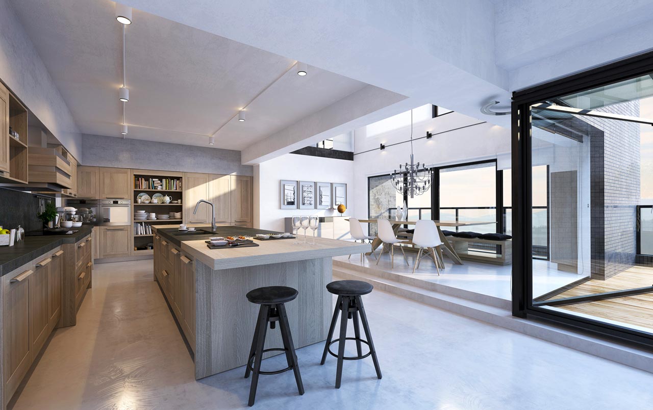 Хорошо оборудованный остров с раковиной, встроенный в снэк-баре, идеально подходит для быстрого перекуса с вашим партнером; он является координационным центром новой кухни открытого плана и столовой — Nuova Fiamma от фабрики GeD Cucine. Функциональное, дружелюбное и многоцелевое пространство подходит для развлечения семьи и друзей. И оно является «новым-современным»: отбеленные блоки древесины, потолок цвета антрацит, толстые ручки. Всё пространство от пола до потолка и от стены до стены остеклено и освещено. Создаётся дружеская атмосфера, развлекаетесь вы или готовите вкусное блюдо.