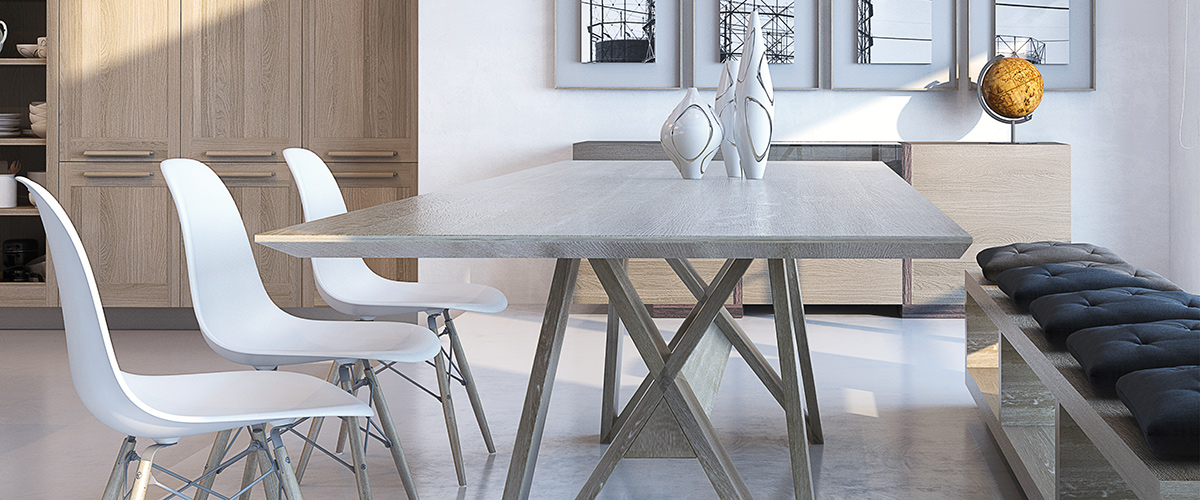Древесина и антрацит. Наша новая современная эстетика воплощает в себе отбеленную древесину и тёмный потолок, выполненный в камне или мраморе. Выглядит шикарно.