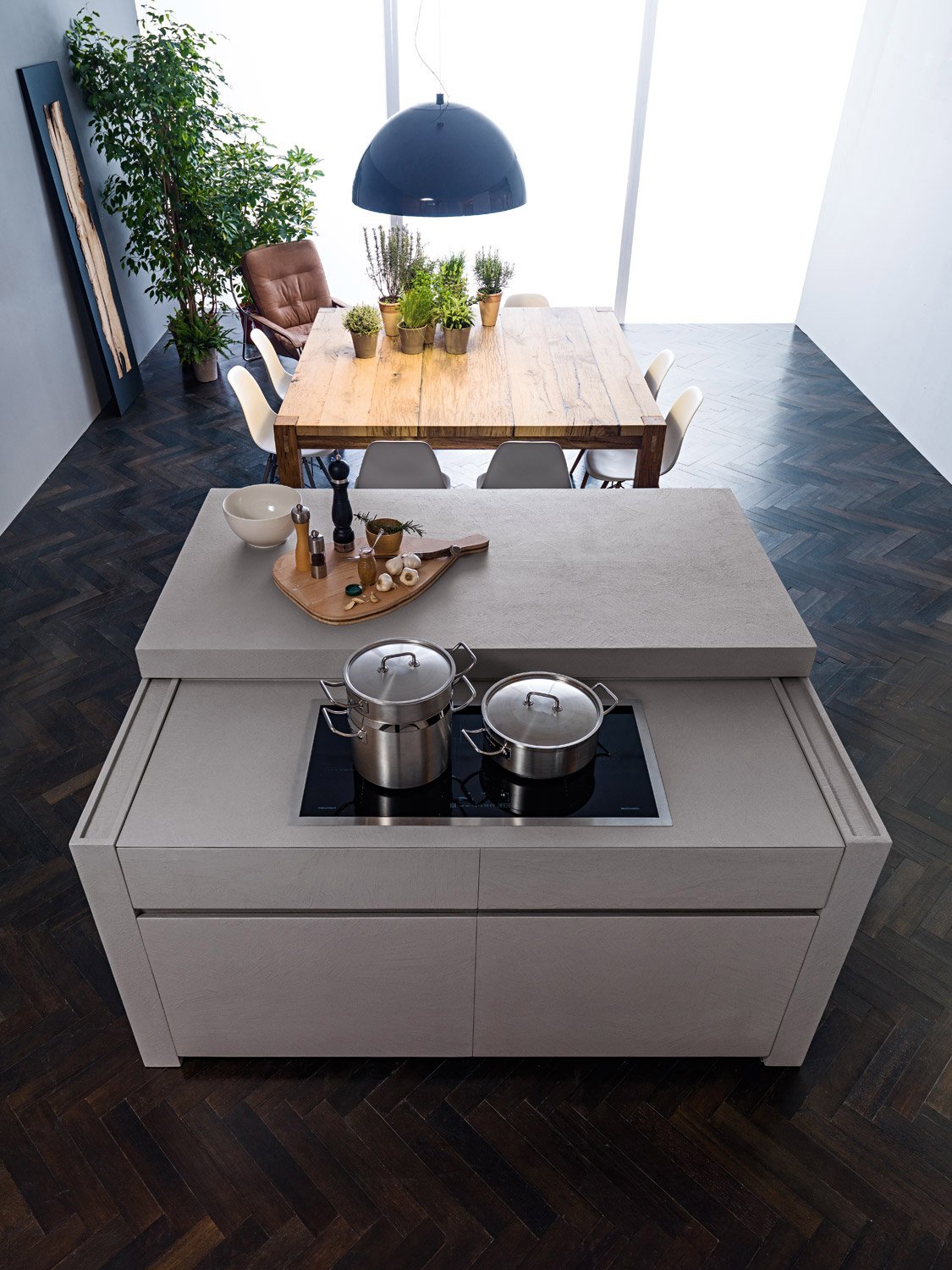 Красота кухни Casa, Sapori Veri начинается с кулинарного острова, в котором есть выдвижная рабочая поверхность в чистом сером оттенке; он создаёт полезное рабочее пространство при закрытии и может использоваться в качестве барной стойки при открытии. Полностью оборудованная ниша, скрытая за двойными убирающимися дверями, украшена тонким слоем покрытия и светодиодами.