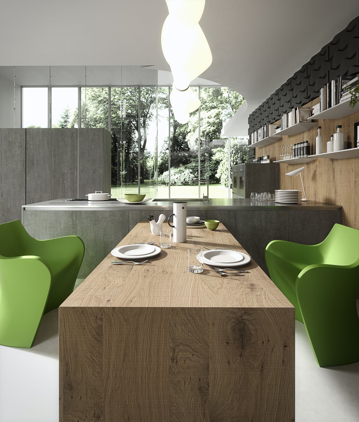 Оригинальная и неподражаемая кухня Karan — элегантный эксперимент от итальянской фабрики Rastelli. Ее центральный элемент — необычный остров, который словно приглашает присесть за стол. Разделочная доска-люк закрывает мойку, а смеситель можно переместить под рабочую поверхность.