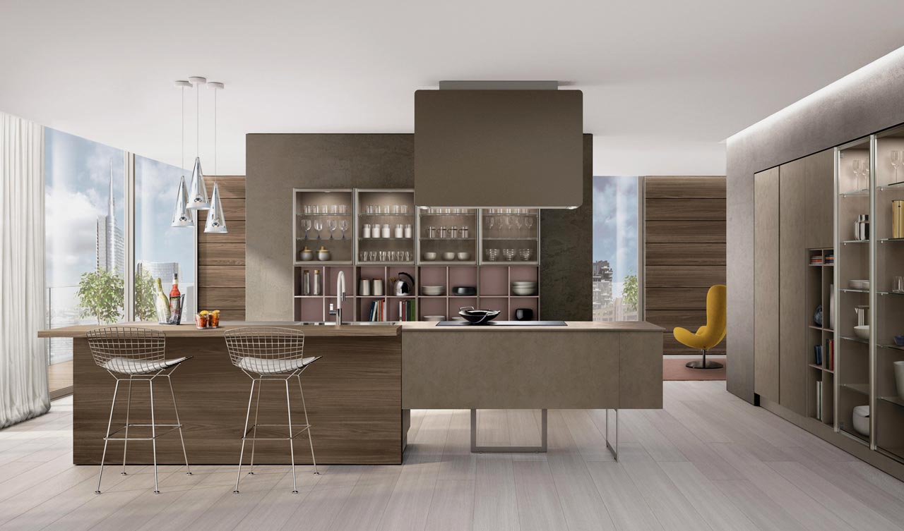 Космополитическая кухня невозможна без центрального острова, так как этот элемент является частью диалога с прилегающей гостиной и столь же изящен, как и остальная часть декора. Новое поколение кухни выполнено в серо-голубой и сливочной цветовой гамме и представляет собой многофункциональное пространство, вращающееся вокруг барной стойки — современная концепция, которая объединяет рабочую зону и гостиную. А вот ломкость шкафов смягчается их бархатистой текстурированной отделкой. Здесь приготовление пищи становится интересным ритуалом, которым можно наслаждаться с семьёй и друзьями.
