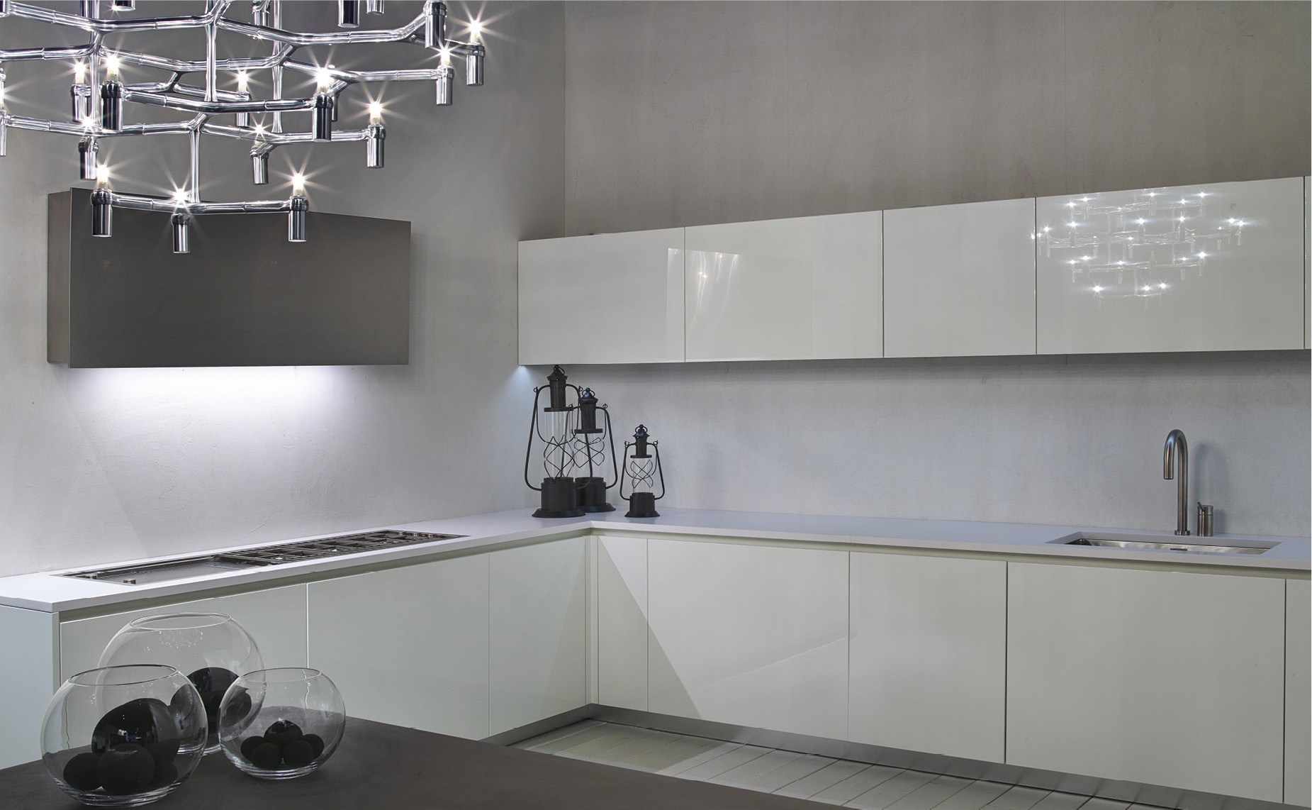 Фабрика Rifra предлагает различные материалы и отделки для создания своих белоснежных кухонь.