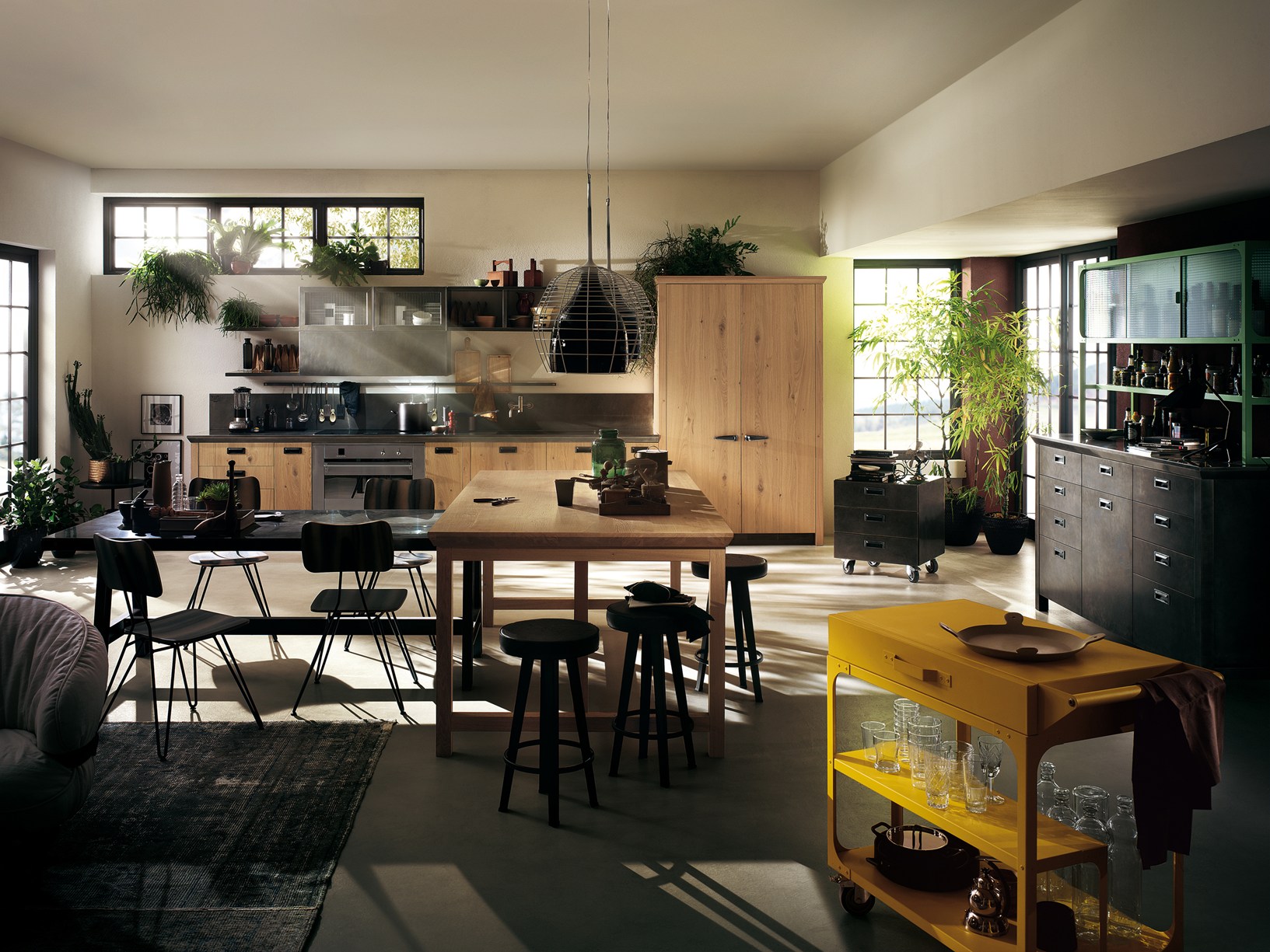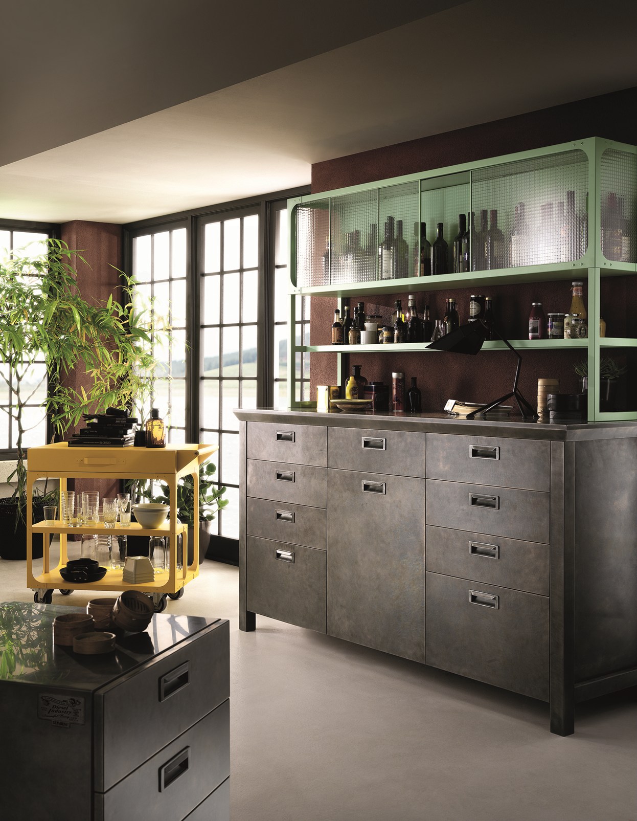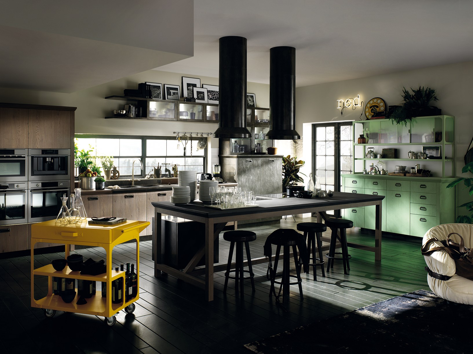 Для новой коллекции Diesel Living, Diesel и Scavolini — два ключевых сторонников итальянского стиля во всём мире, объединили свои усилия, чтобы создать выдающуюся кухню современности как в дизайне, так и в модульности её частей и монтажа, но с материалами, подходом и отделкой, которые отображают винтажный дух в качестве главной ДНК Diesel.