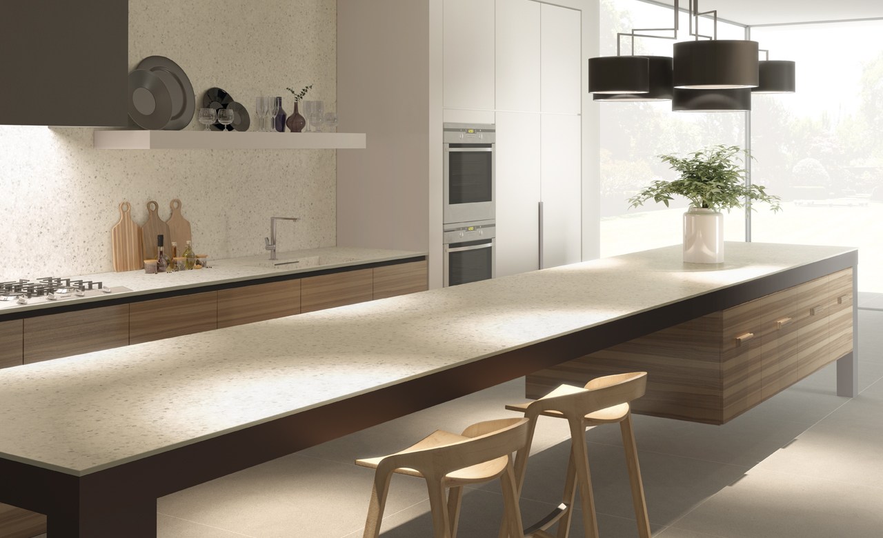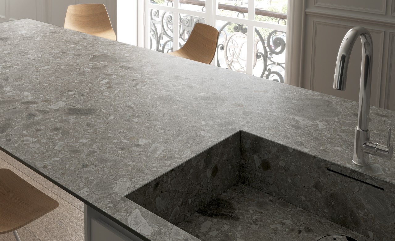 Фарфоровые плиты iTOPKer для столешниц толщиной в 12мм и в формате 1500x3200 мм представляют собой инновационный материал с высокой производительностью и результат сочетания лучших технологий в керамическом производстве, творчества и дизайна. На стенде Inalco на LivingKitchen iTOPKer представляет более 40 отделок, вдохновлённых природными элементами.