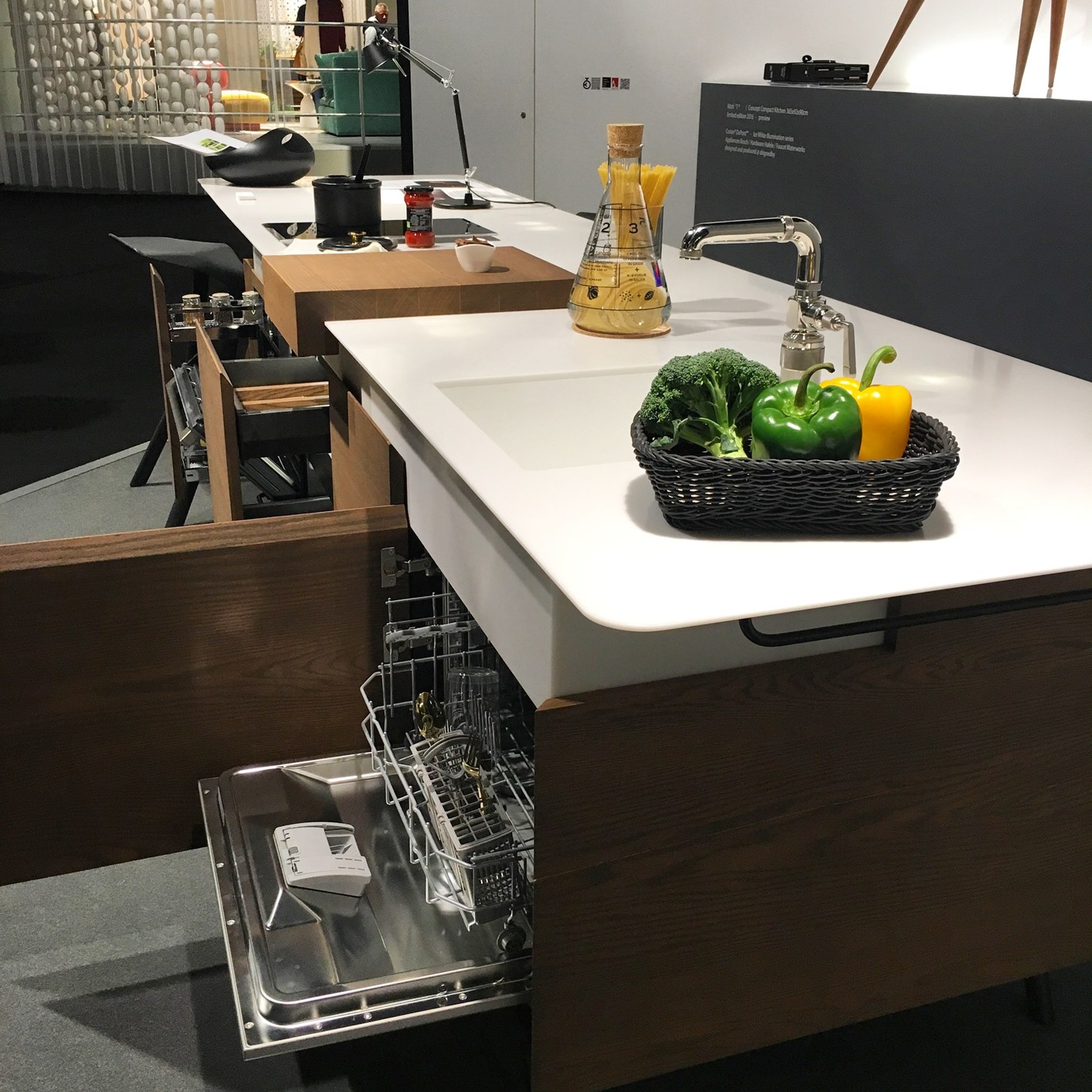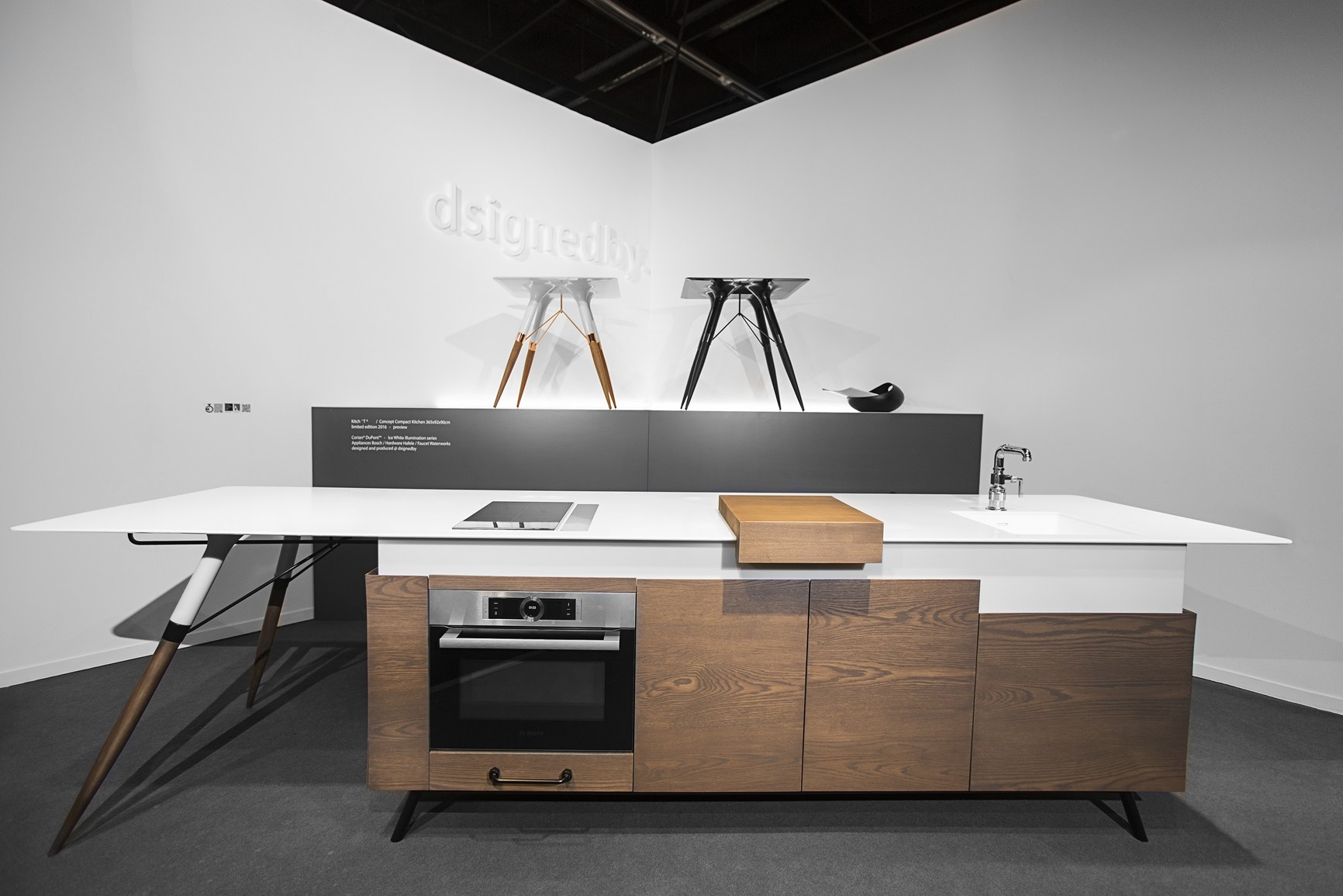 Почему именно дизайн компактной кухни? Архитектурное бюро Dsignedby уже давно занимается разработкой дизайна интерьеров, но популярность ему принесло проектирование кухонь благодаря большому количеству работ. Для рабочих поверхностей dsignedby использует камень Corian DuPont. Во время работы над проектом интерьера дизайнерам пришла идея создания стола Table T, выполненного также из Corian DuPont, для придания кухне концепции design&use, подходящей молодому и современному человеку.