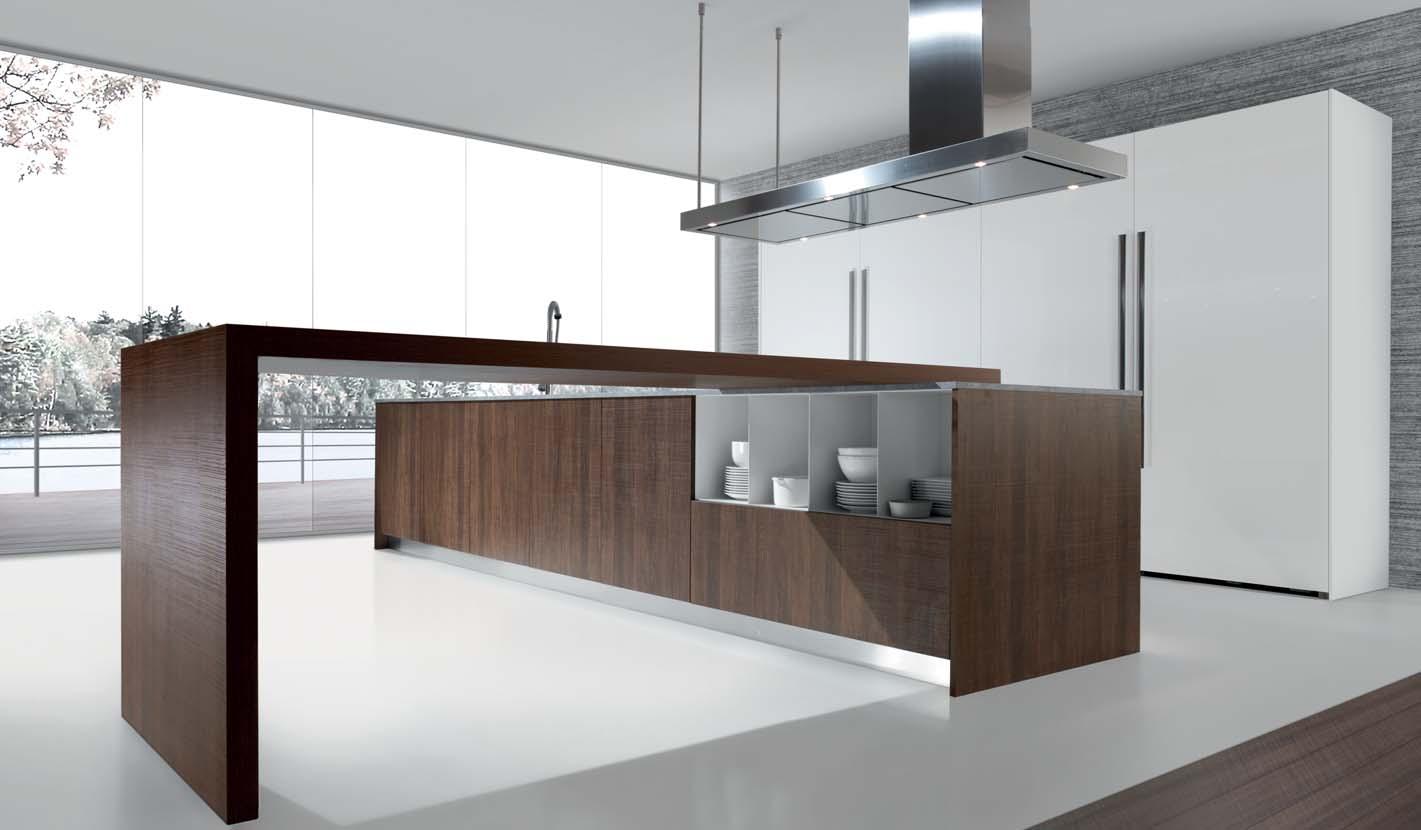 Современная кухня R1 в отделке "Tranche Tobacco Walnut" от фабрики Rastelli. Высокий ценовой сегмент