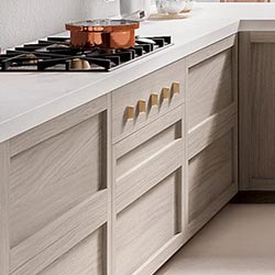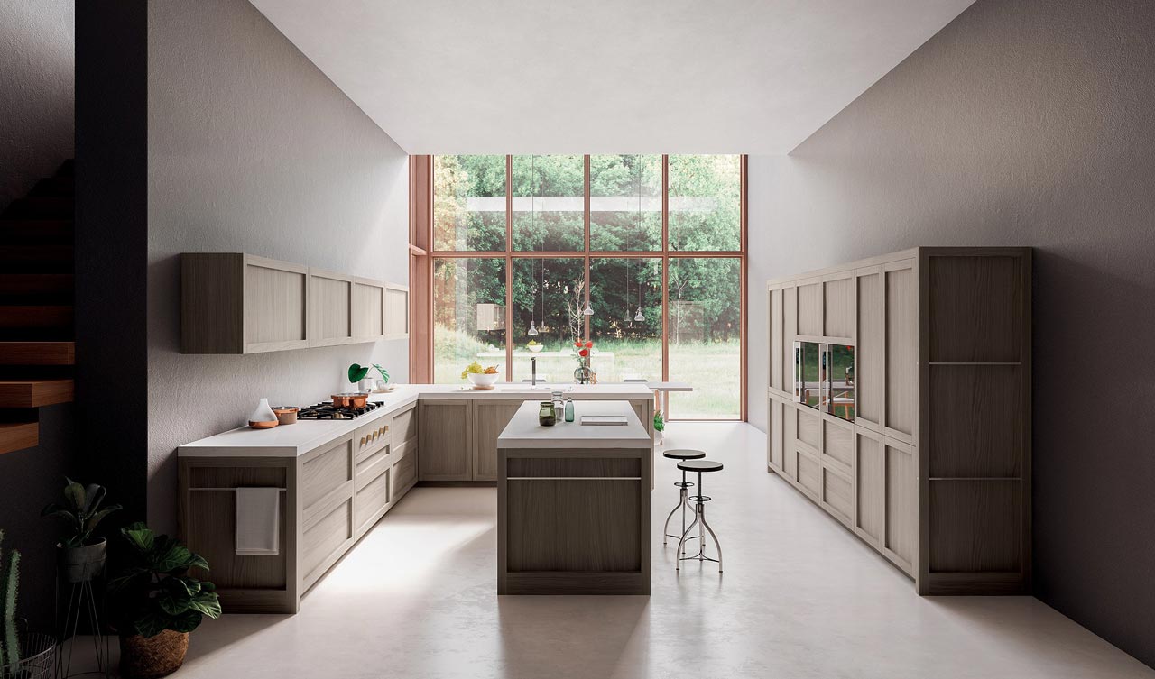 Отдельно стоящий остров отлично подходит для завтрака в качестве барной стойки, а большие L-образные столешницы — в качестве зон для приготовления пищи; в то же время система хранения с двумя встроенными духовыми шкафами идеально справляется с сохранностью ингредиентов для приготовления пищи. Это новый подход к традиционной деревянной кухне: чистый и простой дизайн, который фокусируется на безупречной функции и идеально подходит для семейного пространства. Современная элегантность.