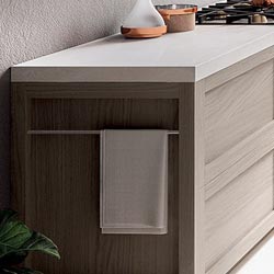 Боковые панели мебели имеют раму и стальной стержень: так что кухонные полотенца всегда будут под рукой, но скрыты от чужих глаз.
