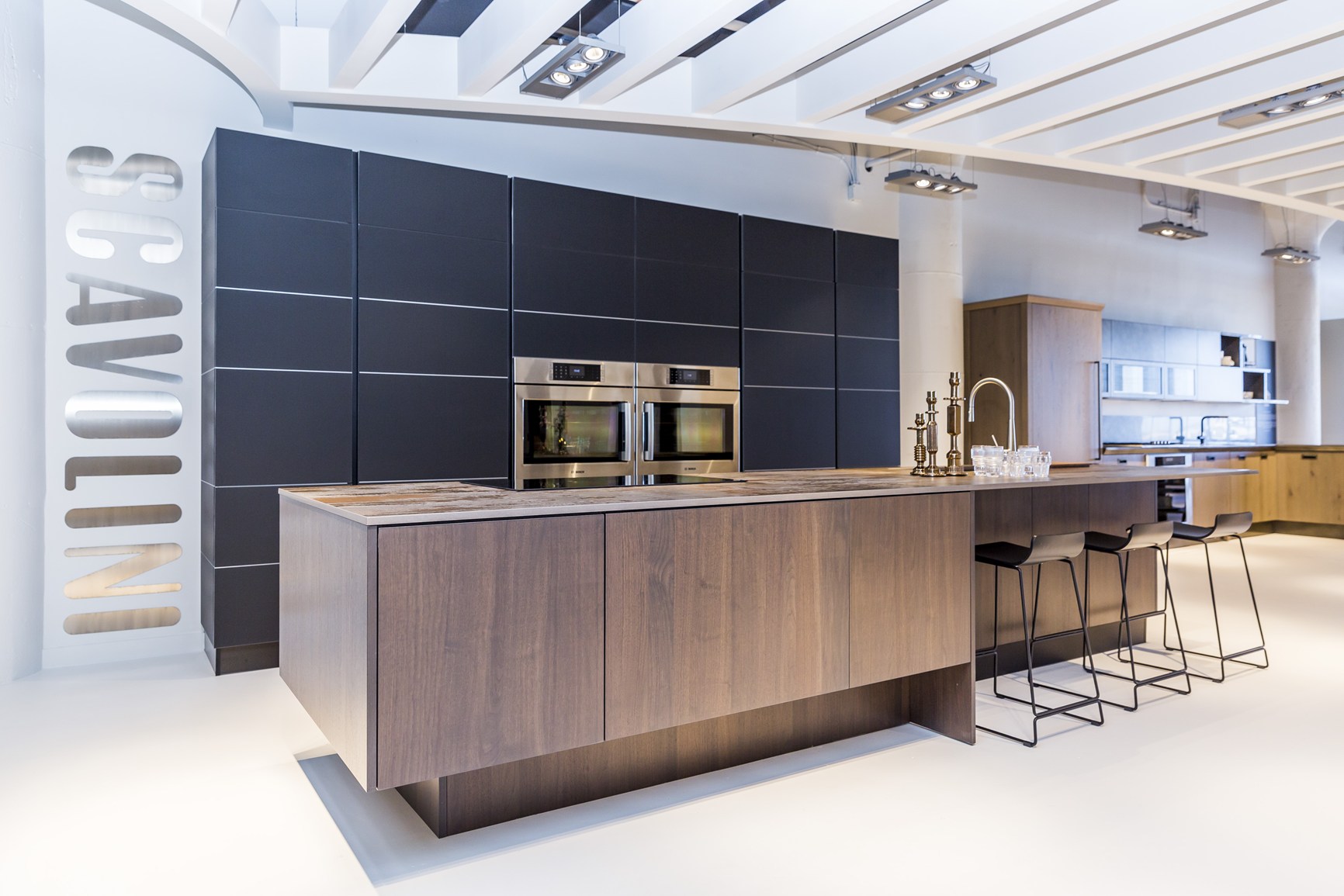 Пять полноценных кухонных композиций вместе с 4 мебельными коллекциями для ванных комнат предназначены для удовлетворения потребностей американской общественности, которая всегда проявляла свою признательность, в частности, к продукции Scavolini, как с точки зрения внимания к деталям и итальянского дизайна, так и широких возможностей изготовления на заказ. Представленные решения в шоуруме включают модели Liberamente, Foodshelf и Diesel Social Kitchen; ванные комнаты Rivo, Font, Aquo и Idro, а также 2 решения гостиной, созданных с использованием настенной системы Fluida.