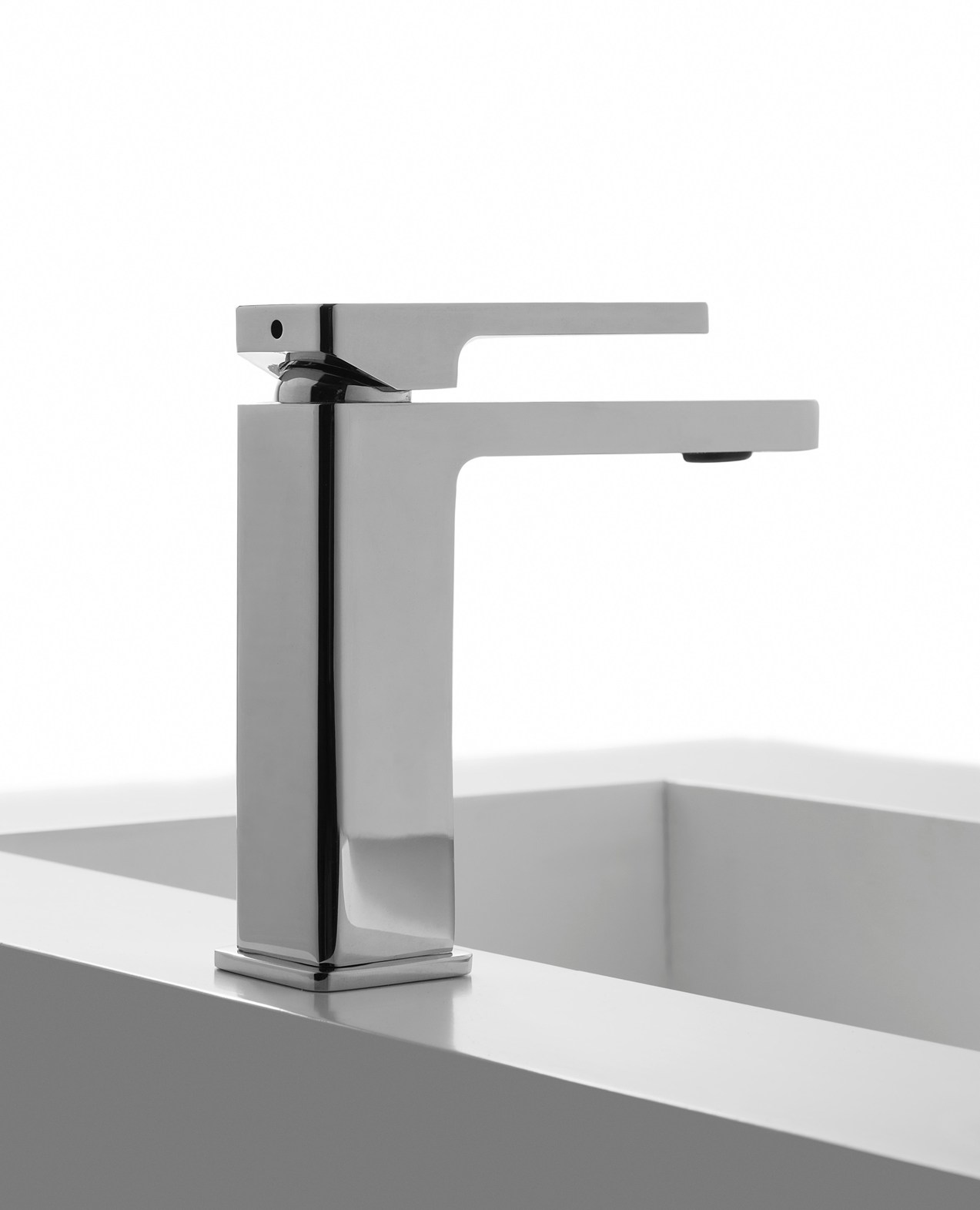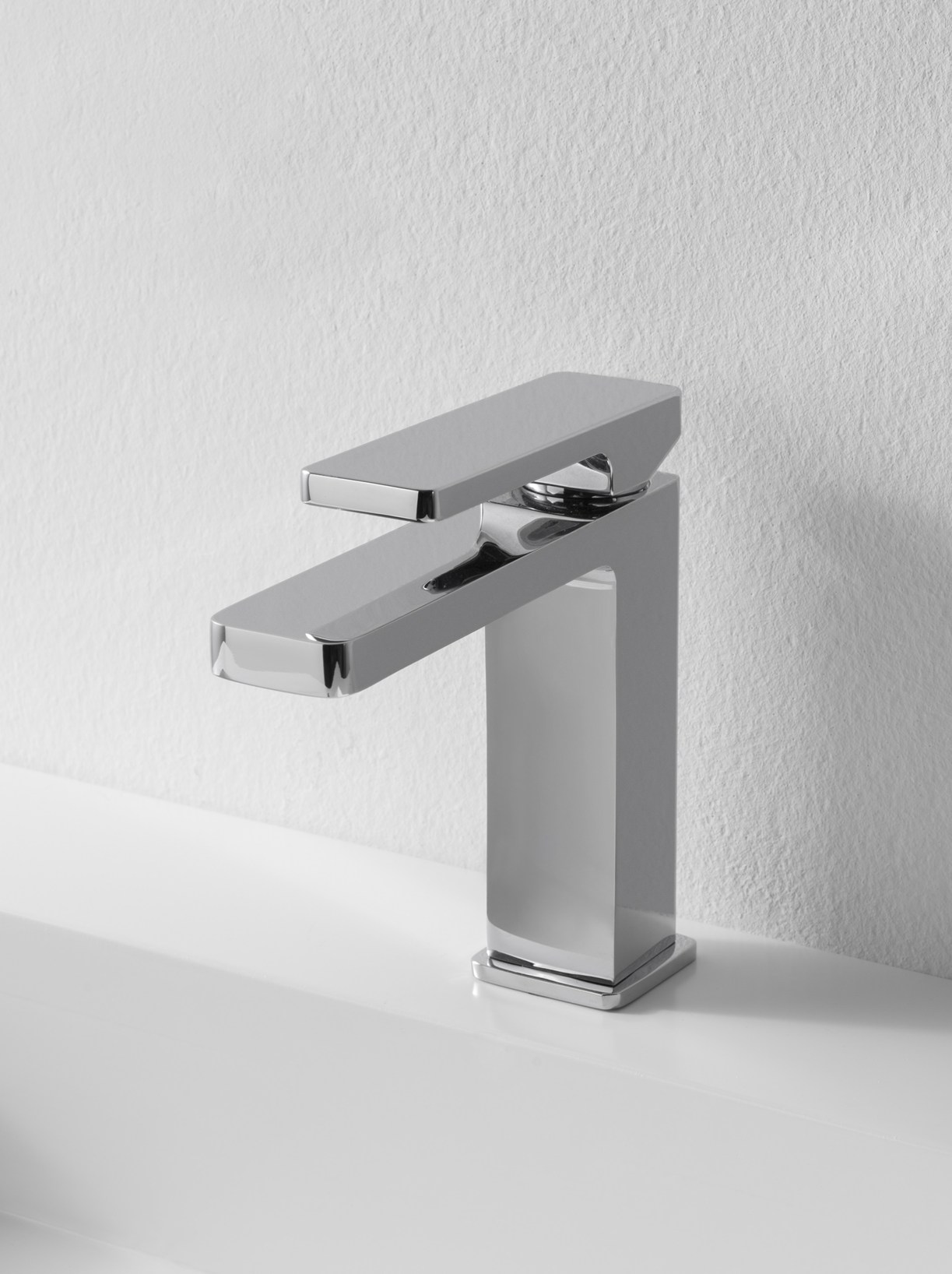 Кран для раковины, который является отличительным элементом коллекции, предлагается в хромированной и матовой отделки стали; он доступен в стандартном варианте или с удлиненным отверстием в 3 различных размерах: 151, 212 и 302 мм.