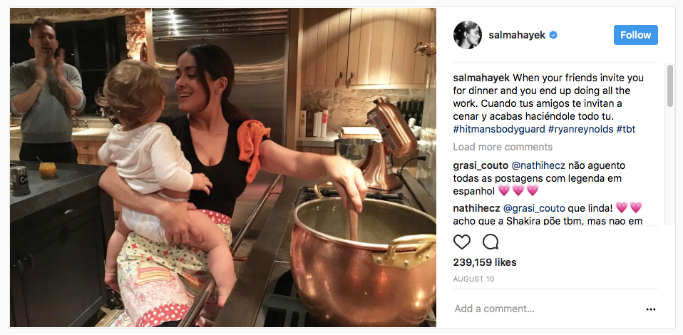 Сальма Хайек недавно заглянула на кухню к Блейк Лайвли и Райану Рейнольдсу, о чём она сообщила в сообщении, опубликованном в Instagram.