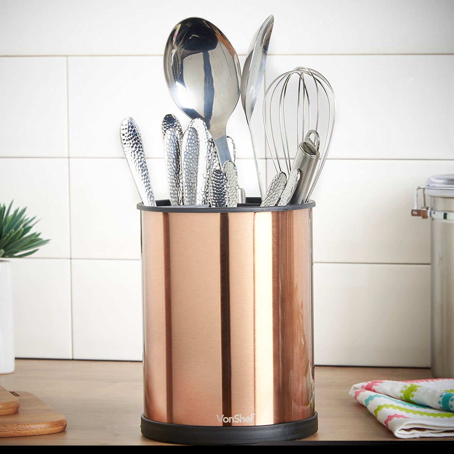 Положите свои блестящие столовые приборы в этот вращающийся медный держатель для посуды от VonShef.