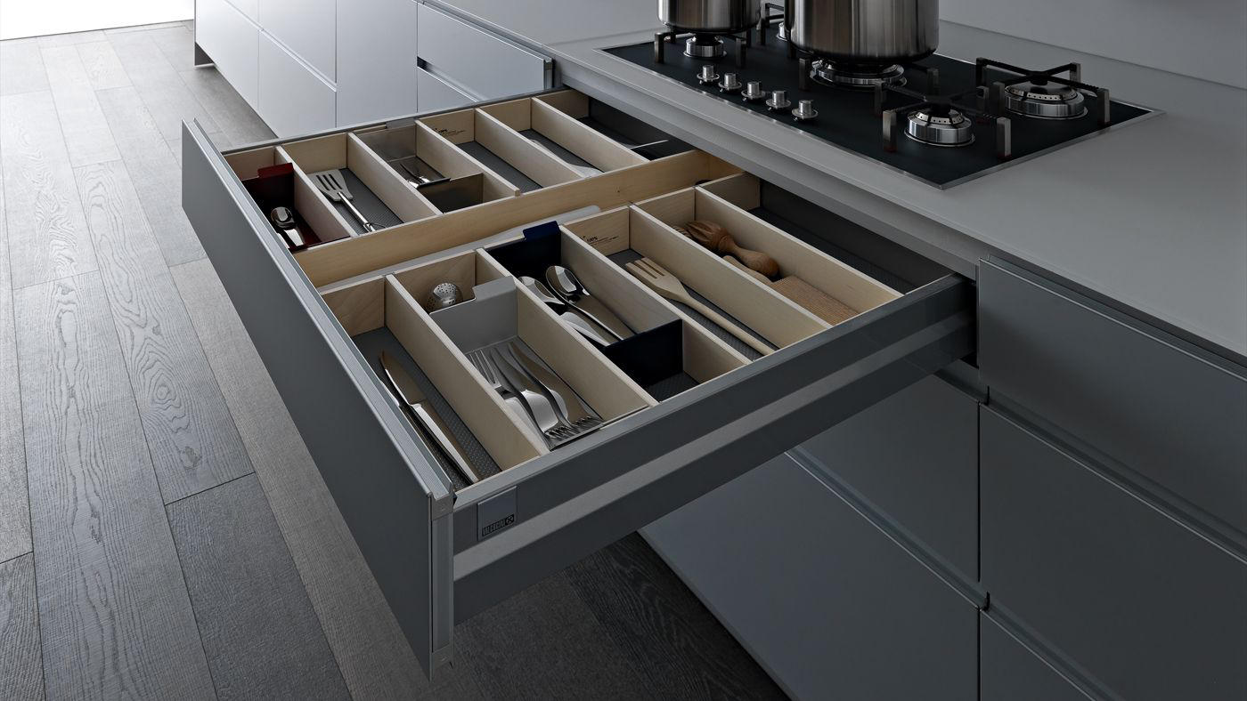 Поддержание аккуратной и чистой кухни сделает работу намного проще и поможет вам оставаться в хорошем настроении. Ящик, в котором всё на местах дарит настоящую радость каждый раз, когда вы его открываете. Разделители ящиков, корзины и аксессуары помогут вам мгновенно найти то, что вам нужно.