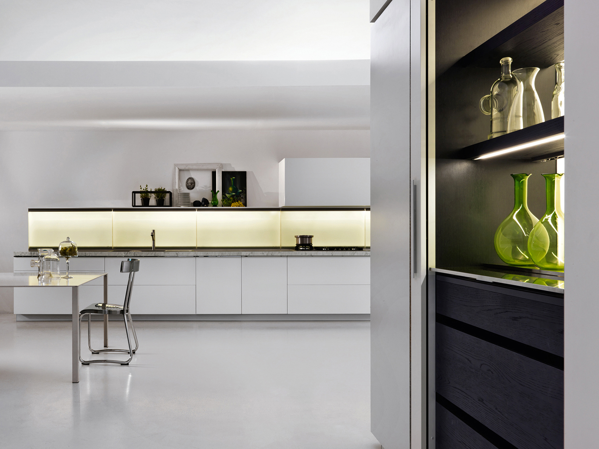 Не увлекайтесь открытой кухней, особенно если это часть главной жилой зоны. Artematica от Valcucine скрывает всю область приготовления пищи, включая смеситель. Фасады закрываются при одном нажатии пальца.