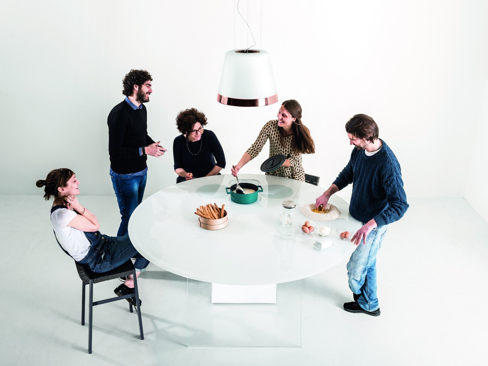 Разработанная Daniele Lago, кухня Air имеет круглую форму, превращая остров в круглый стол, который одновременно вмещает повара, готовящего еду, и гостей, благоприятствуя разговору и взаимодействию.