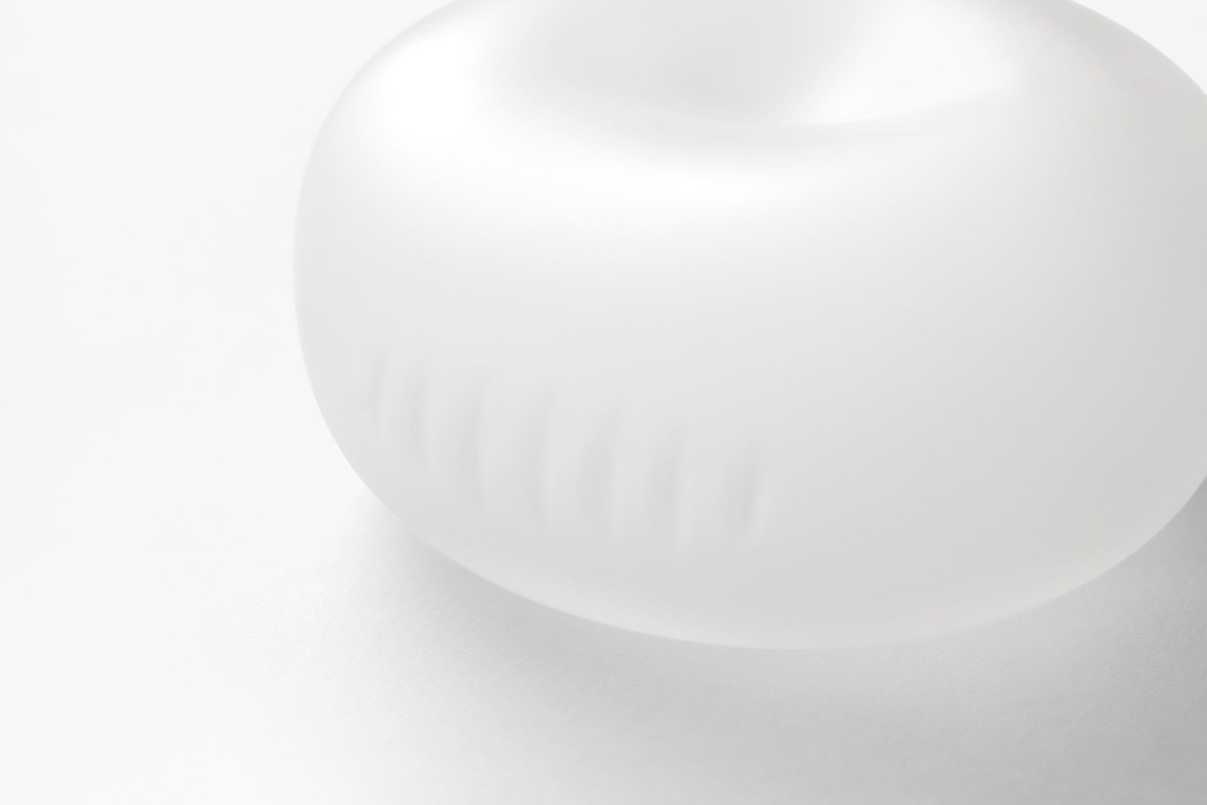 Нежная матовая стеклянная поверхность скрывает невероятную силу этой мельницы. Объект состоит из круглого стеклянного контейнера, заполненного перцем, и основы, изготовленной из того же материала. При использовании сушеный перец засыпают из контейнера на основание.