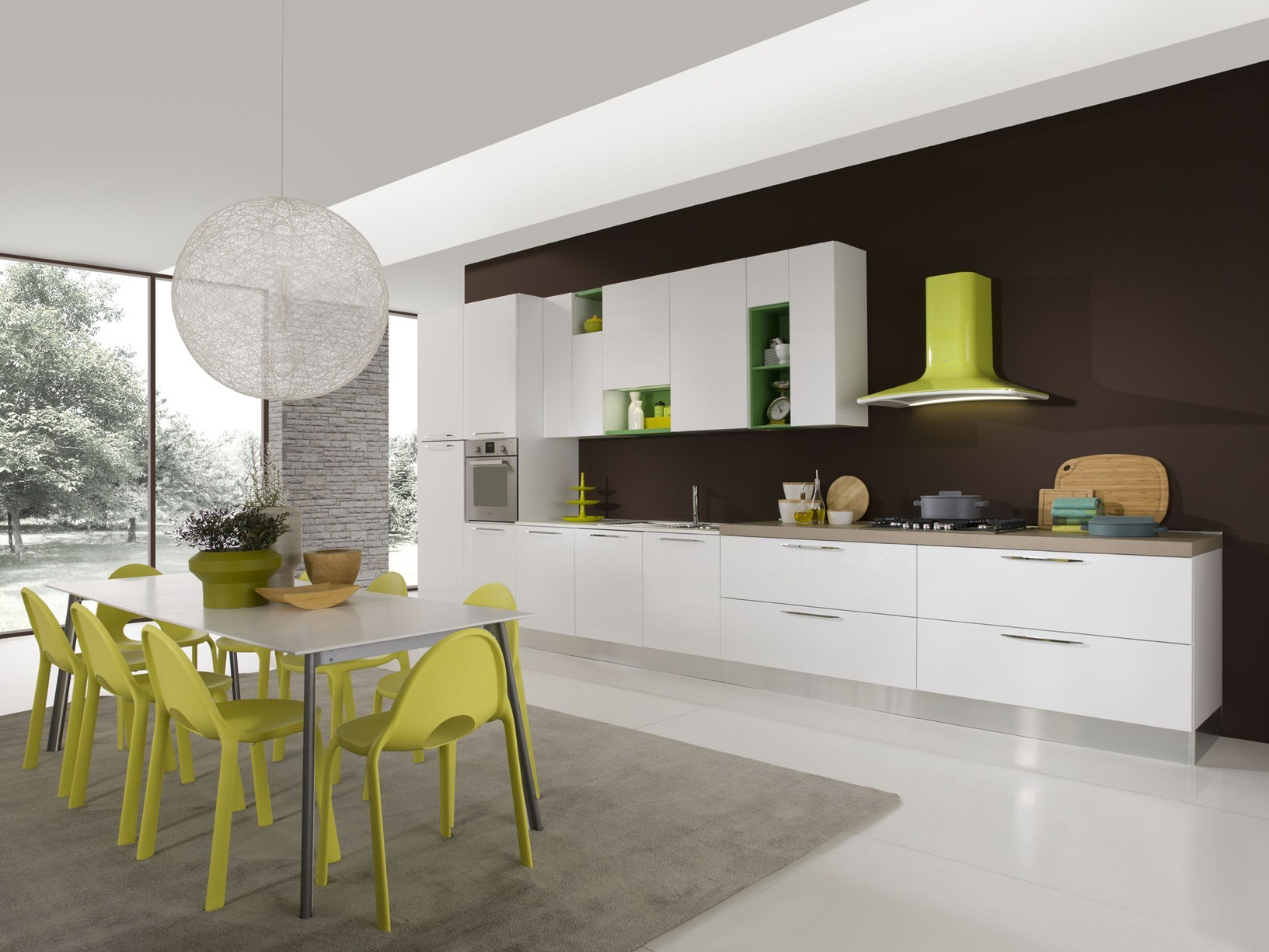 Отделка кухни Bella от Aran Cucine с окрашенными фасадами из МДФ и шпонированной столешницей. Доступный ценовой сегмент