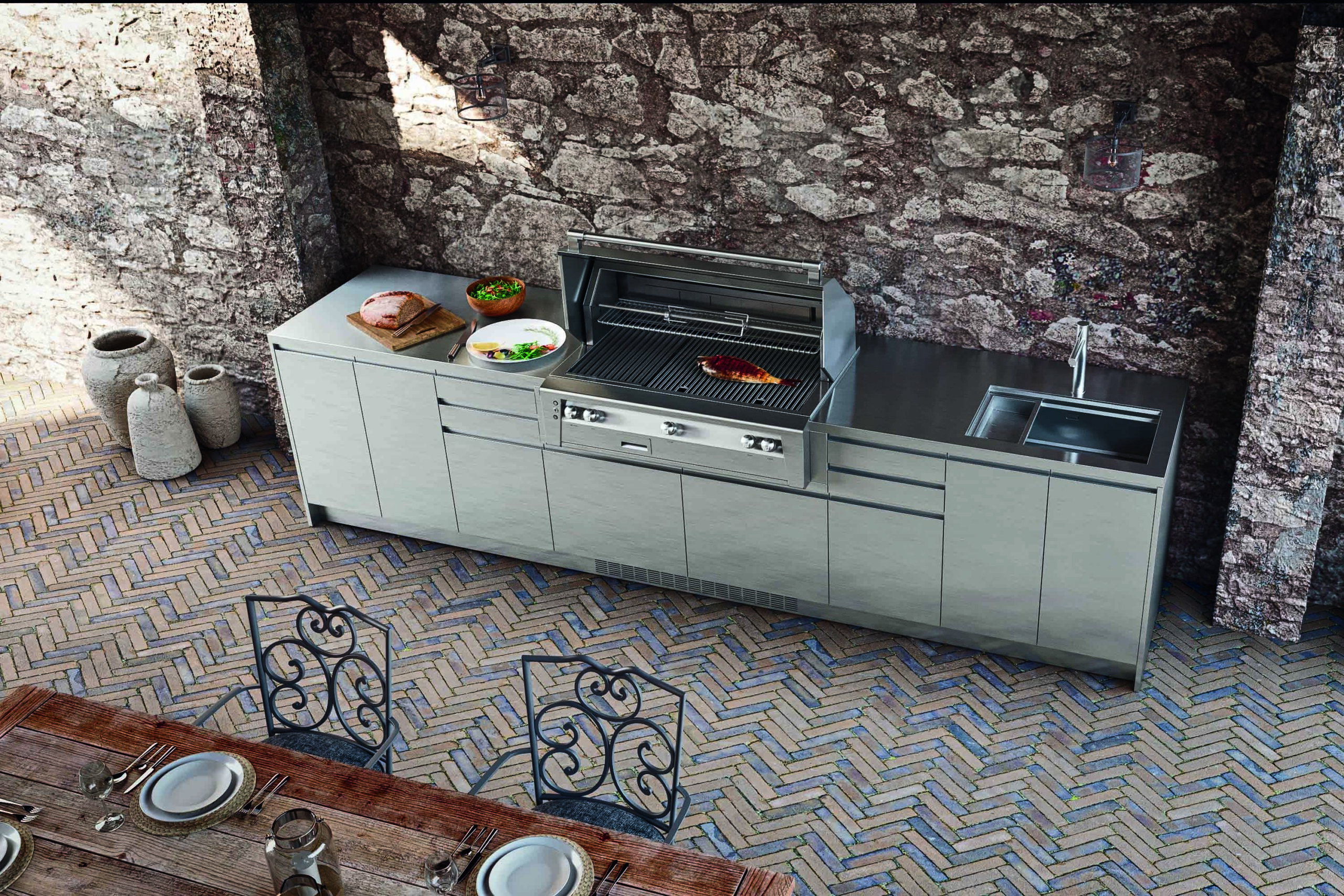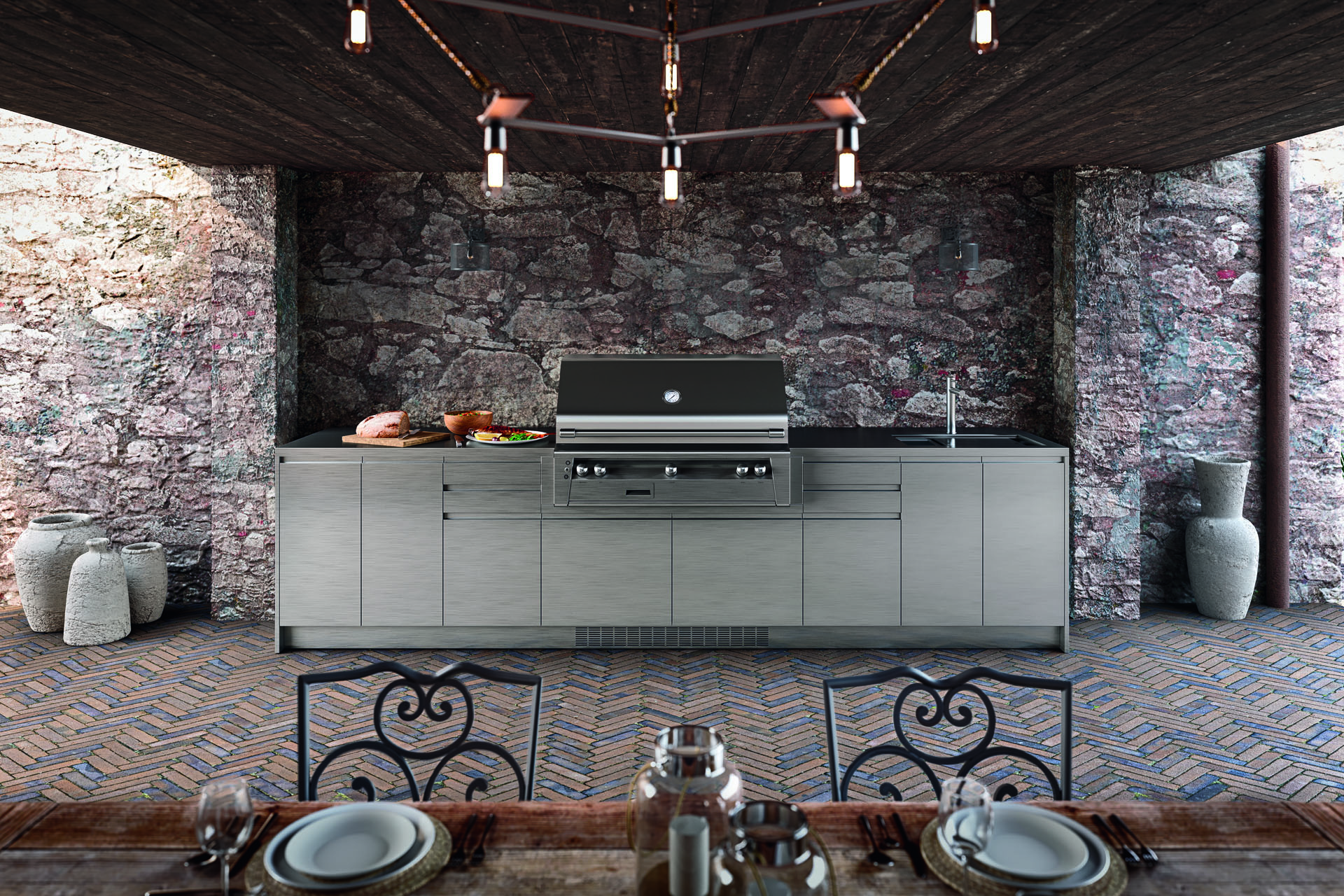 Кухни Outdoor легко вписываются в любое пространство благодаря модульной системе, которая позволяет гибко создавать различные конфигурации: от компактных островков до просторных гриль-зон. Богатый ассортимент модулей предоставляет возможность создать кухню, идеально соответствующую индивидуальным предпочтениям и потребностям.