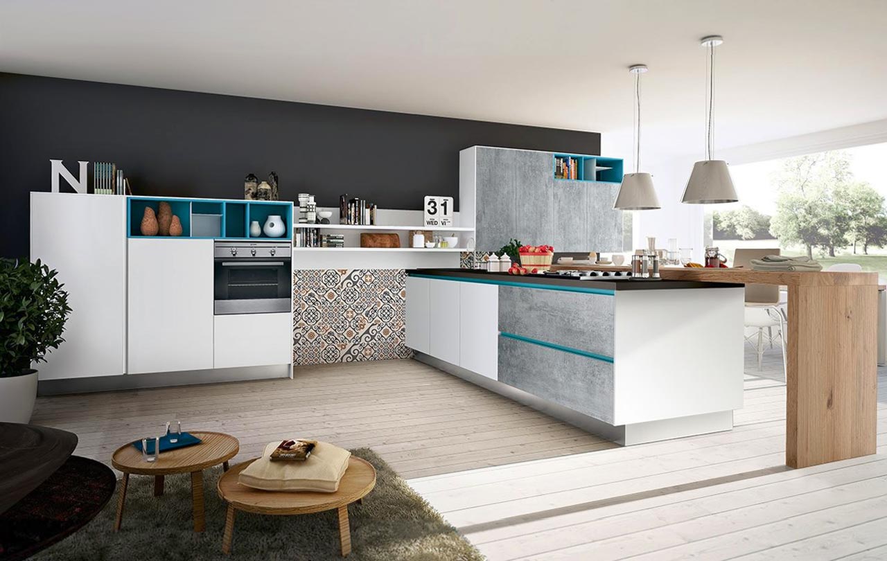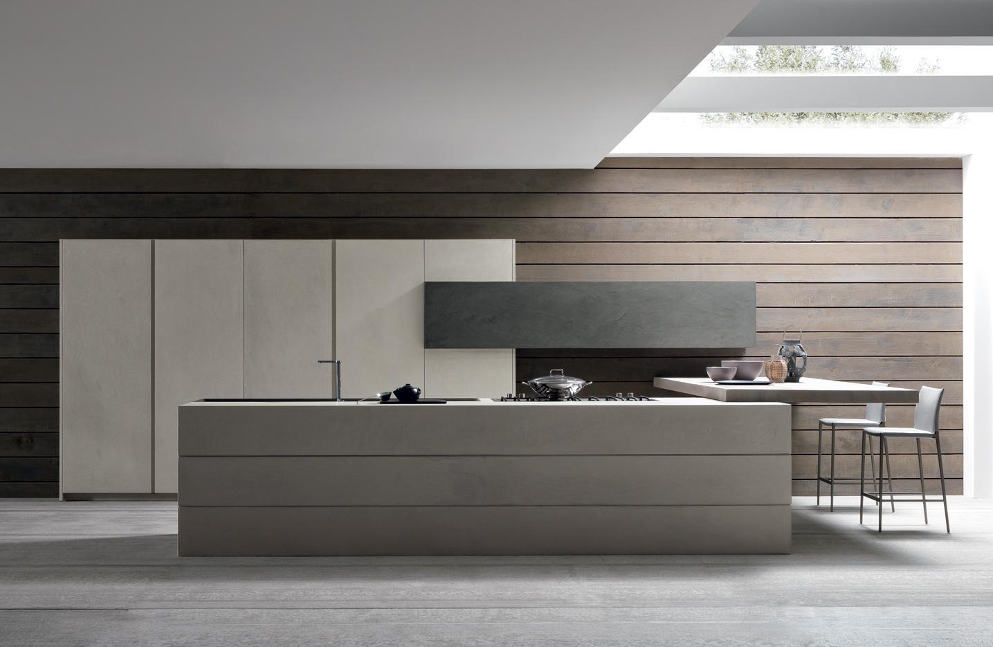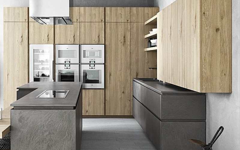Знаменитая кухня Twenty Resina от Modulnova. Мастера фабрики одними из первых начали применять цемент в отделке фасадов. Средний ценовой сегмент