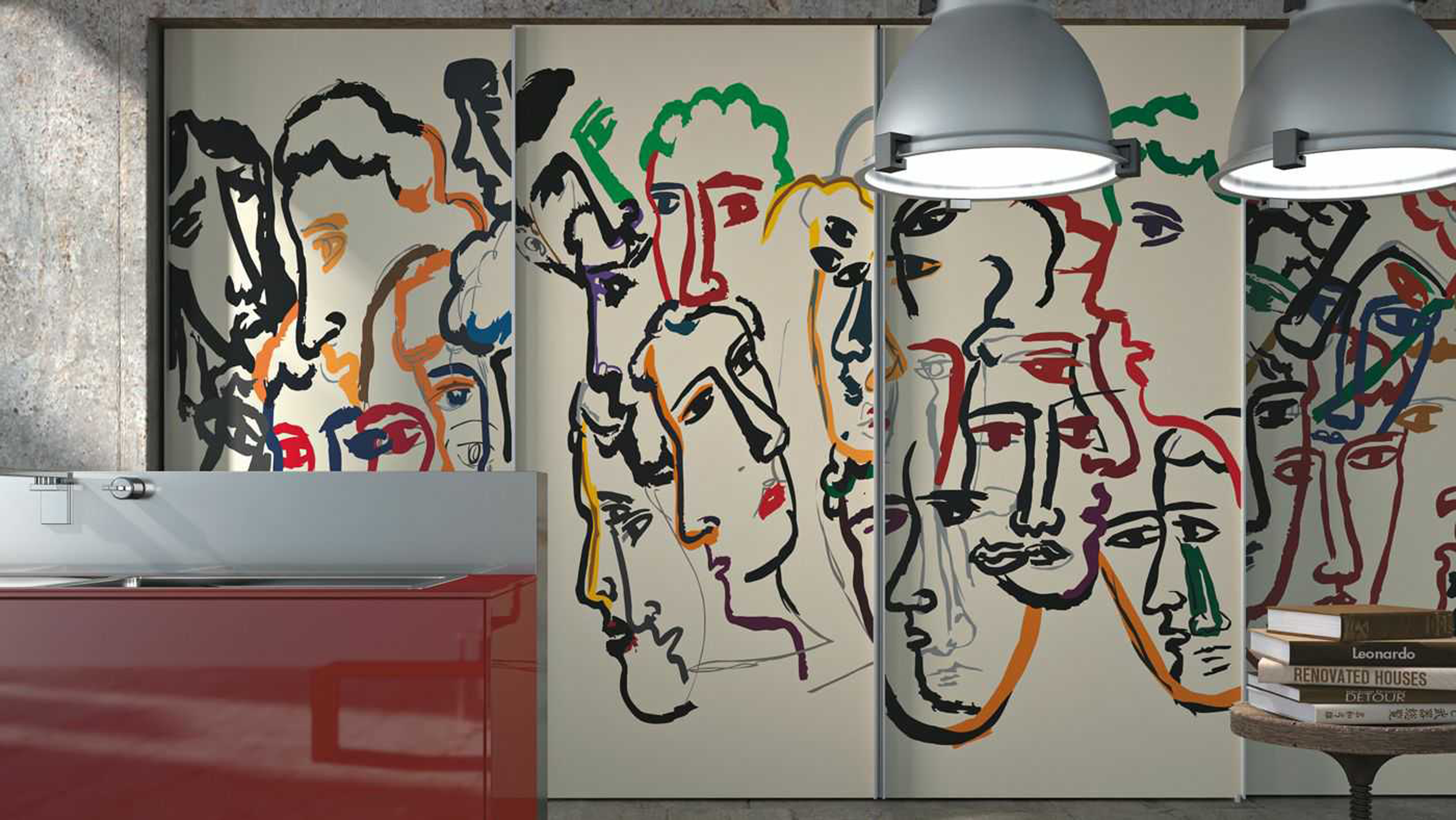 Кухня Artematica Vitrum Arte Sandro Chia — "L'enigma del volto" от Valcucine. Авторский проект итальянского художника и скульптора Sandro Chia. Высокий ценовой сегмент