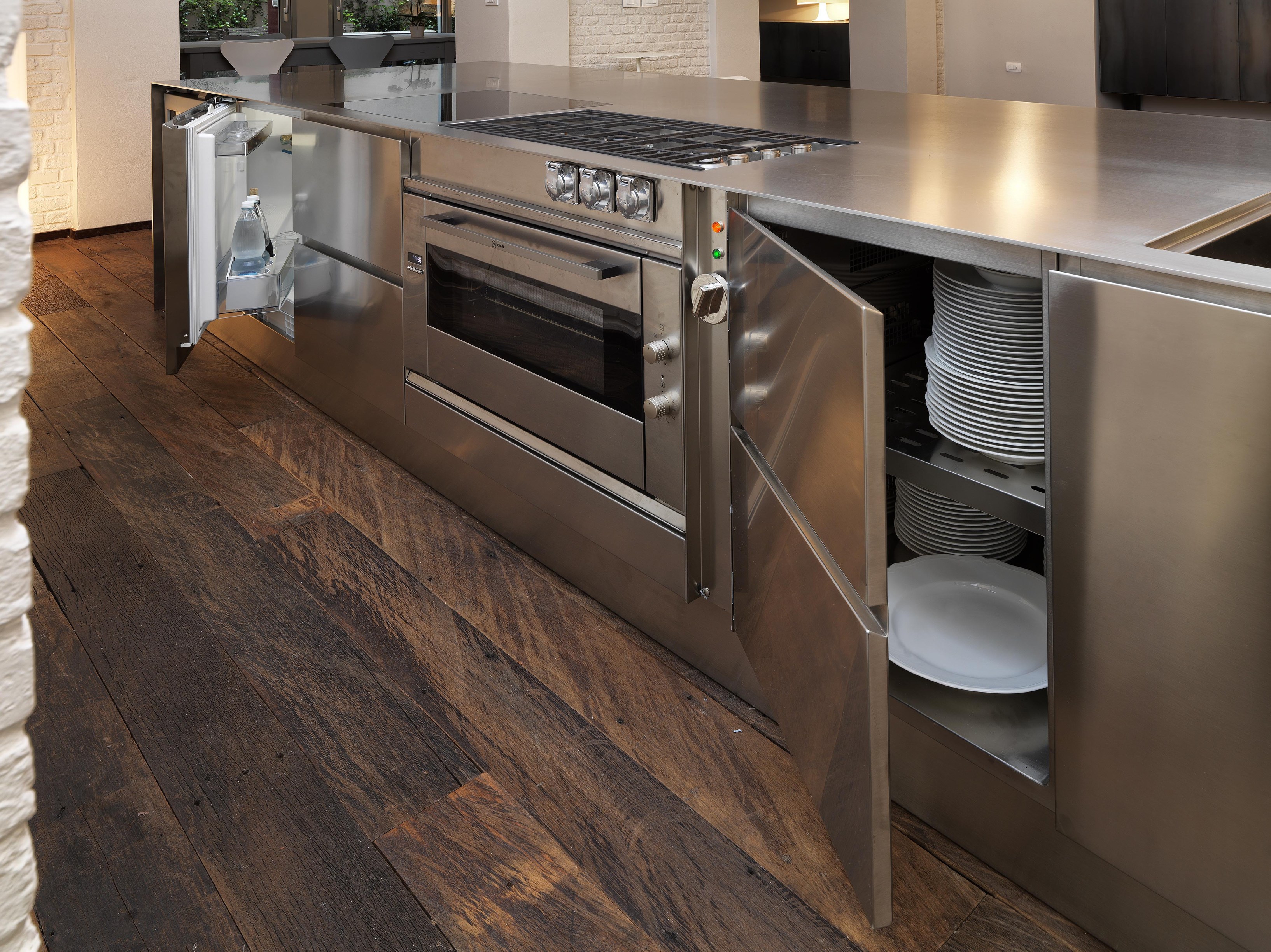 Модели Chelsea и Bagutta доступны с 2 типами столешниц. Фасады могут иметь скошенные или прямые края. Материалы: сталь или другие, которые удобны и неприхотливы в процессе готовки. Дверки могут быть окрашены или иметь другие отделки. Их квадратная форма придаёт очерченный и аккуратный вид кухонному гарнитуру. Специальная округлая форма внутренних отделений не позволит скапливаться загрязнениям, что обеспечивает высокий уровень гигиены. Цвета и материалы перекрытий также различны. По желанию, кухня может комплектоваться скрытыми или стандартными ручками.