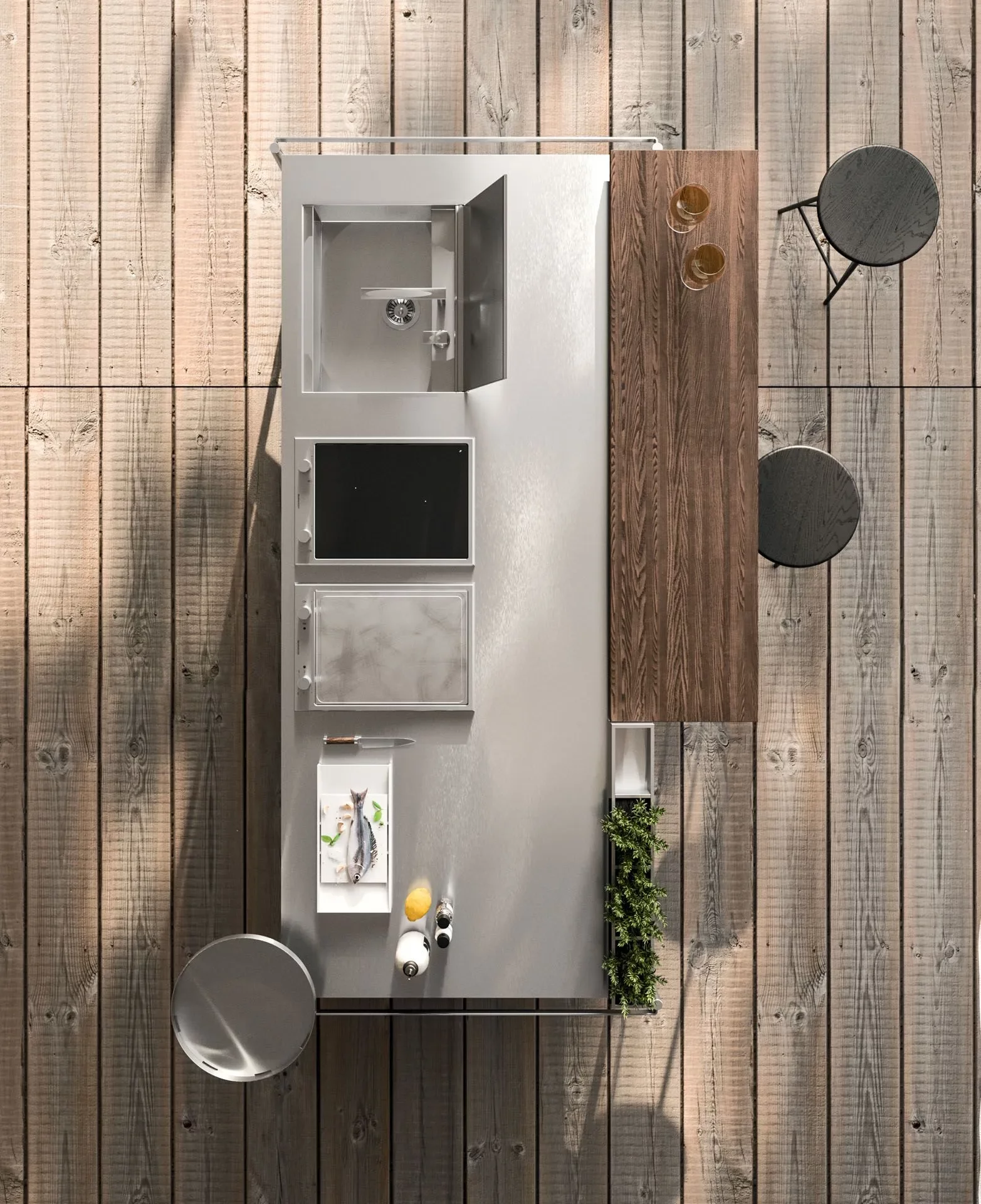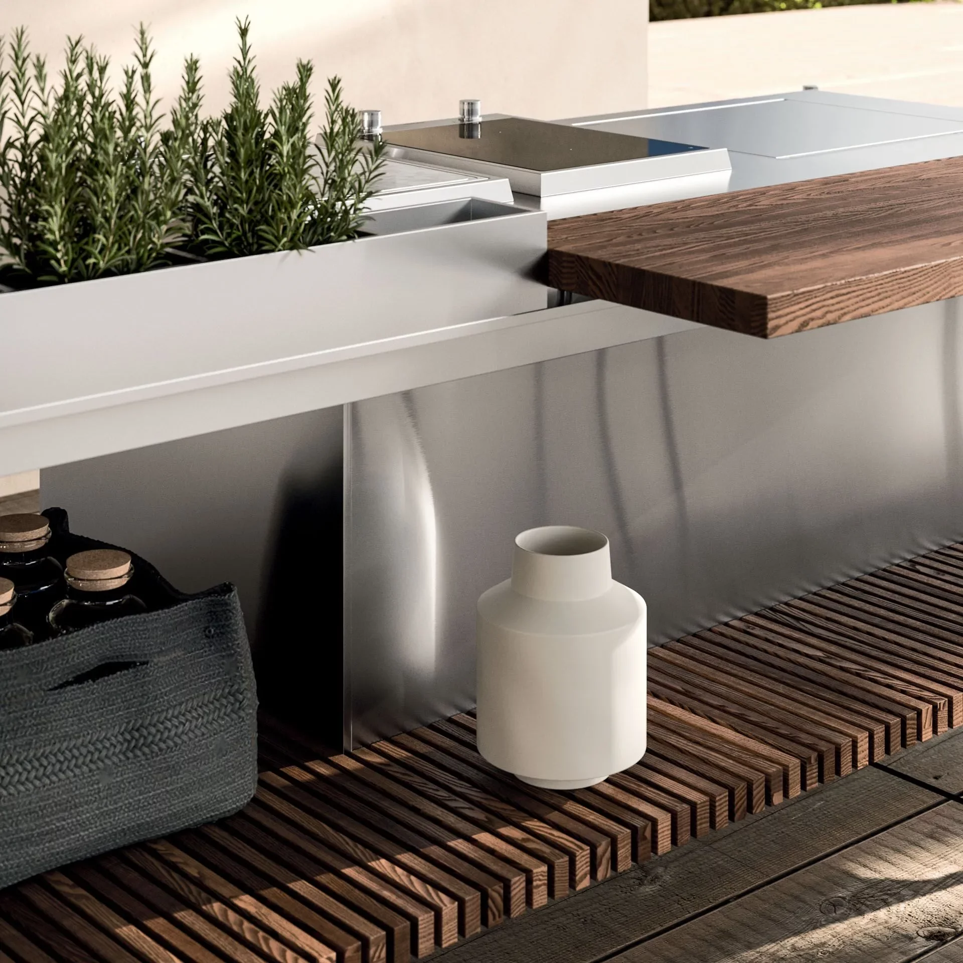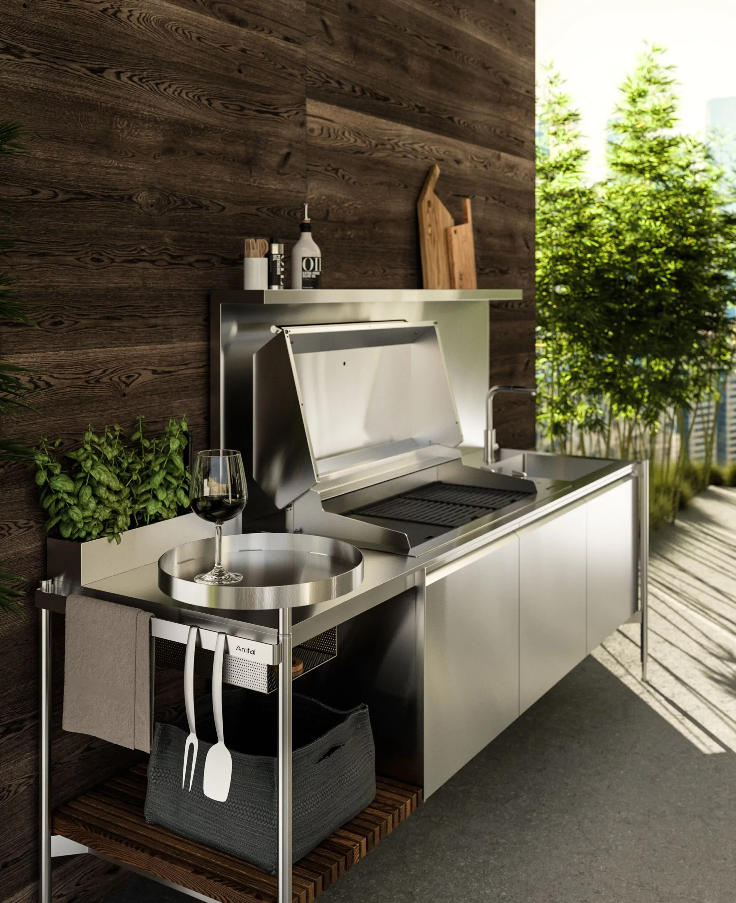 Solaria — это не просто кухня на свежем воздухе, а полноценное дизайнерское решение для тех, кто ценит комфорт, эстетику и технологичность. В её основе — премиальные материалы и инновационные инженерные решения, позволяющие сохранять безупречный вид и высокую функциональность в любых климатических условиях: от ливня до морского бриза.
