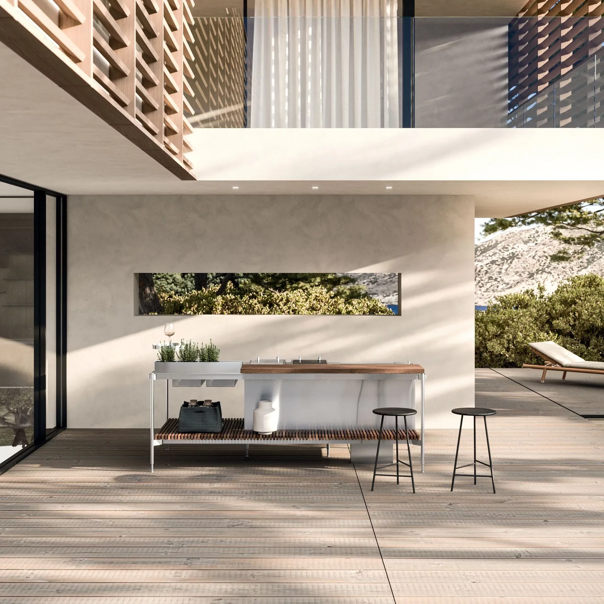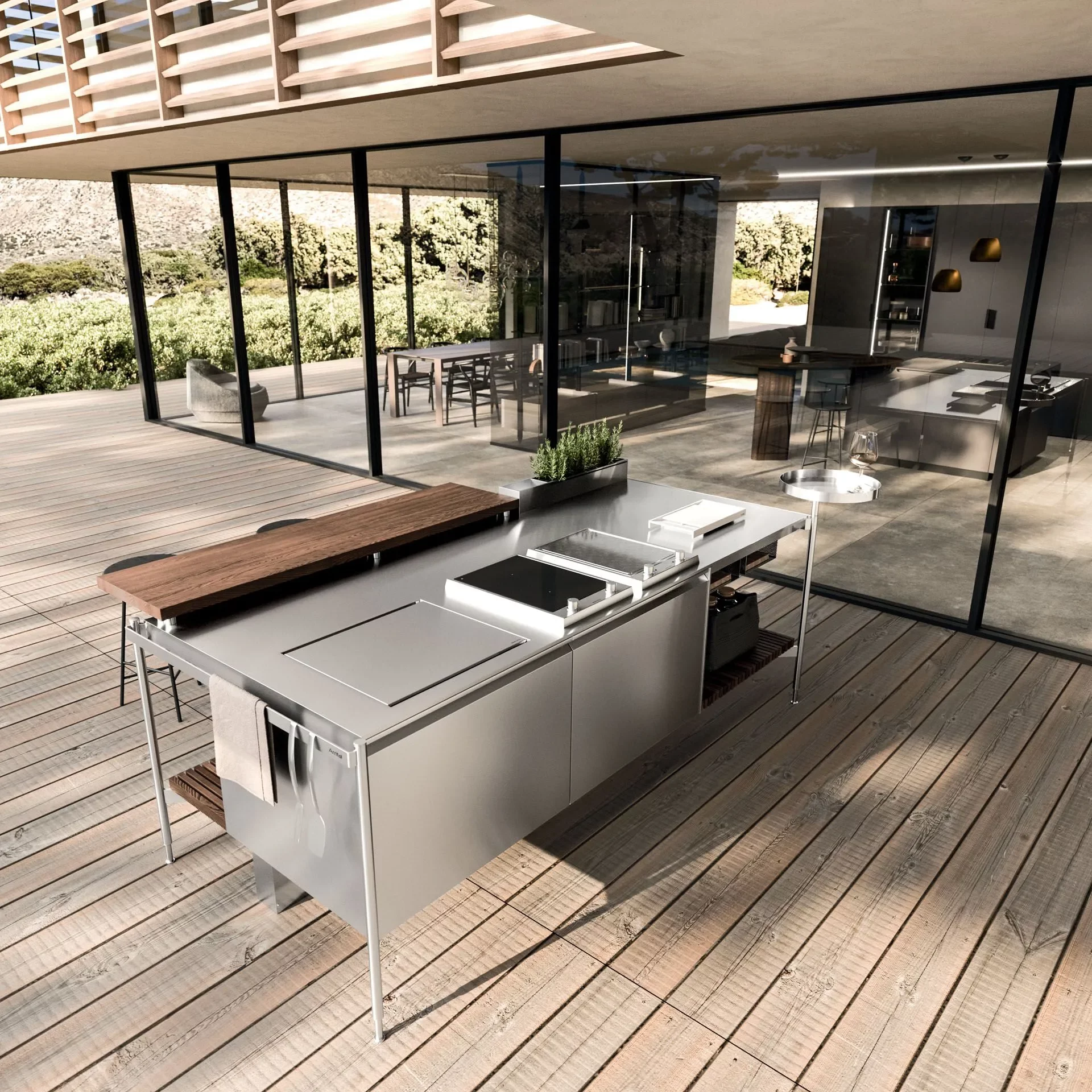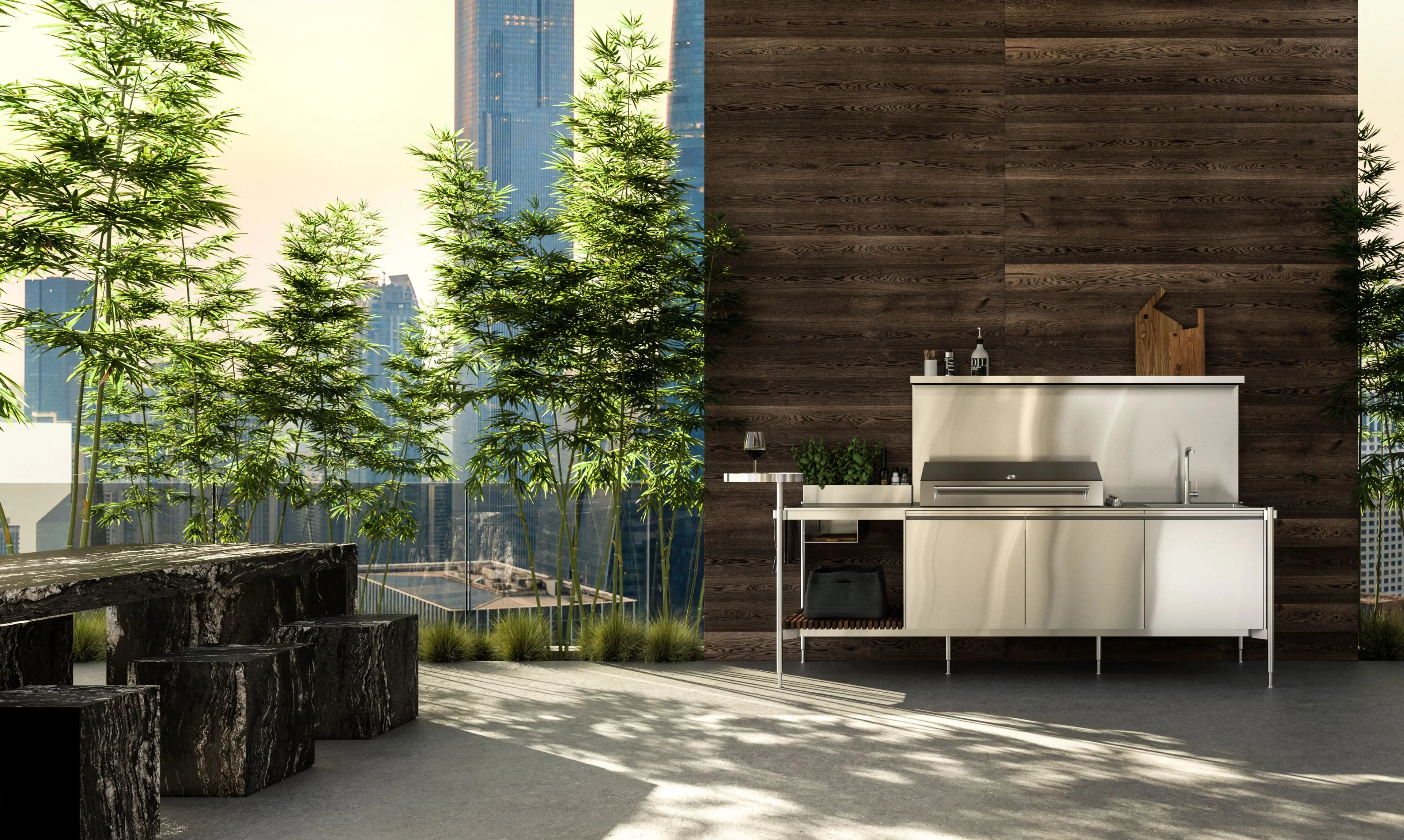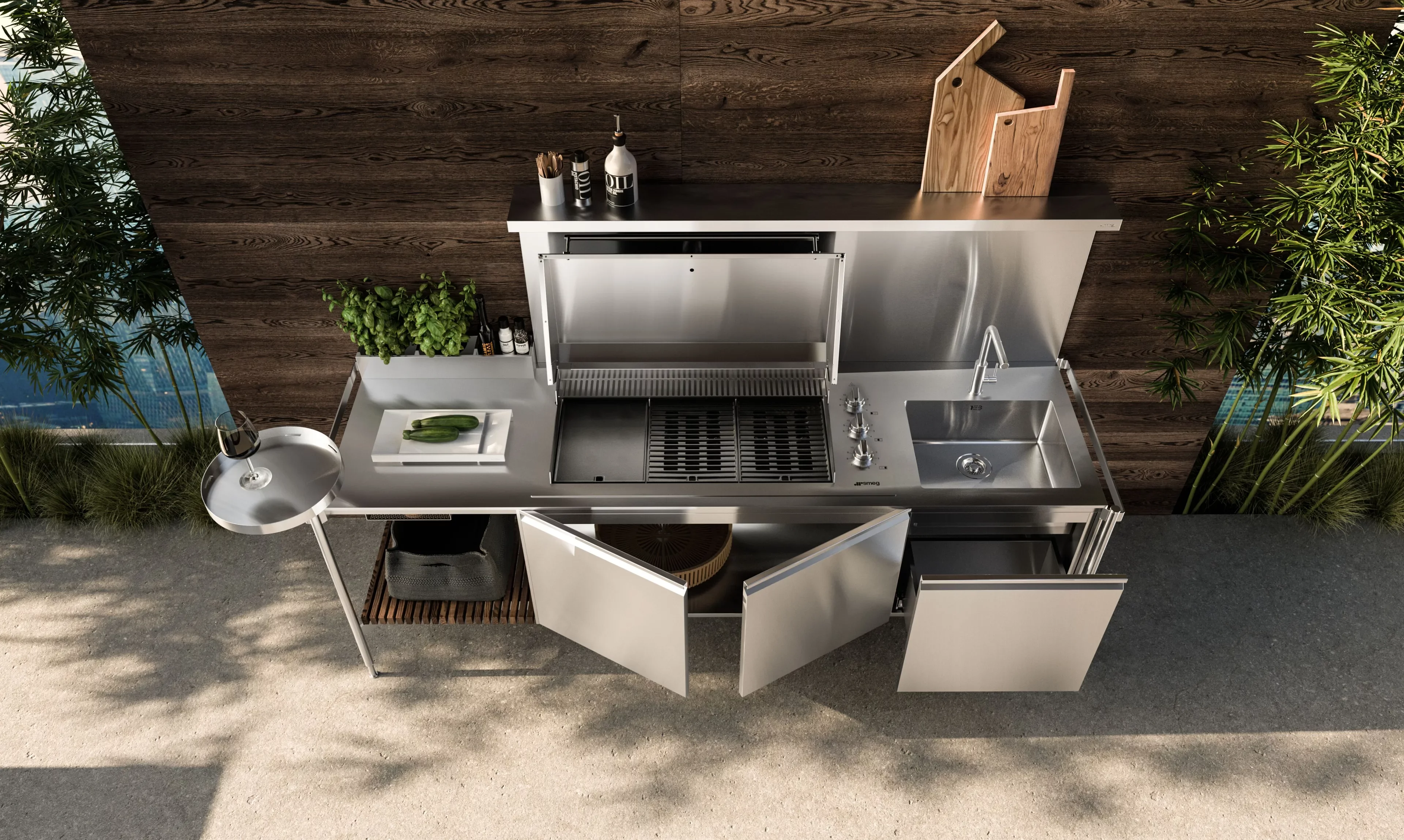 Solaria — это не просто кухня на свежем воздухе, а полноценное дизайнерское решение для тех, кто ценит комфорт, эстетику и технологичность. В её основе — премиальные материалы и инновационные инженерные решения, позволяющие сохранять безупречный вид и высокую функциональность в любых климатических условиях: от ливня до морского бриза.
