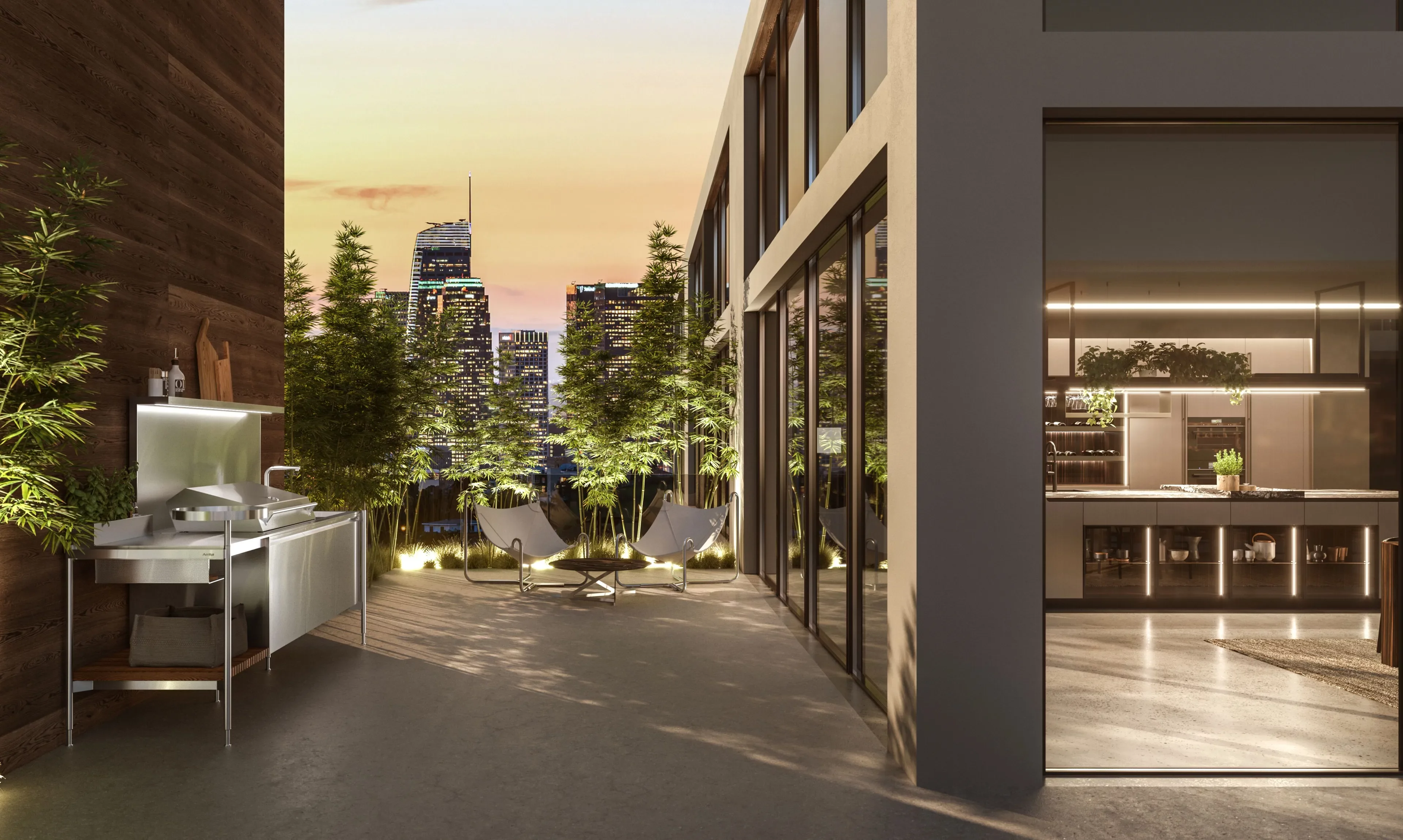 • Современные отделочные материалы: керамогранит, сталь, термообработанный ясень и эксклюзивное анти-УФ покрытие для защиты и персонализации дизайна.