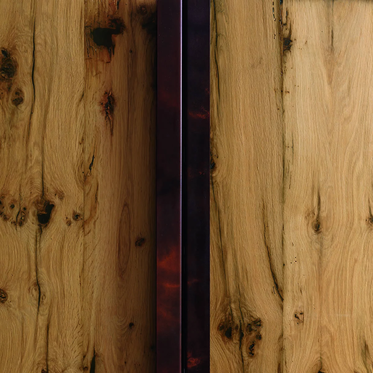 Удачная комбинация матовых пастельных фасадов и деревянной столешницы со шкафом в такой же отделке придаст изюминку вашему современному пространству. Завершением минималистического характера модели являются скрытые ручки на дверцах и использование исключительно глухих фасадов.