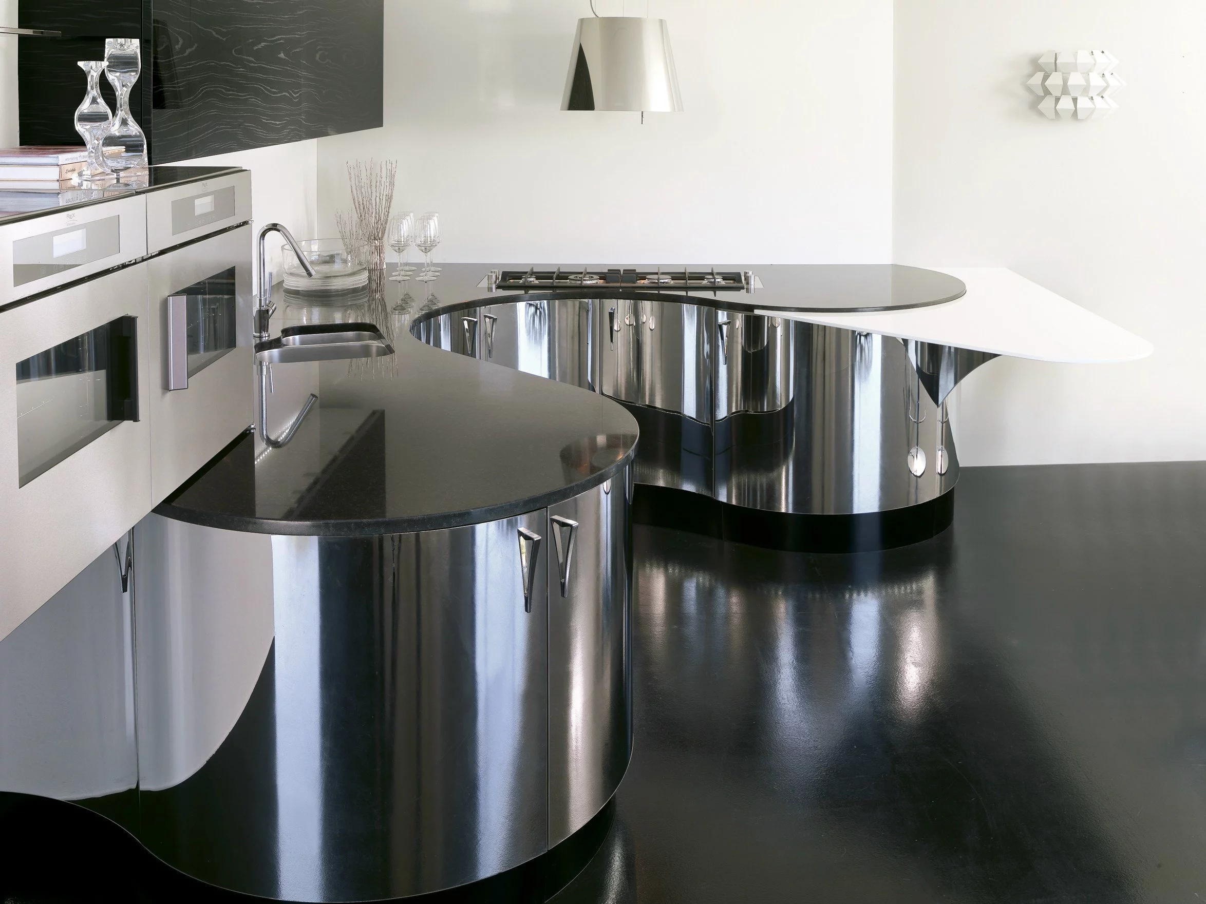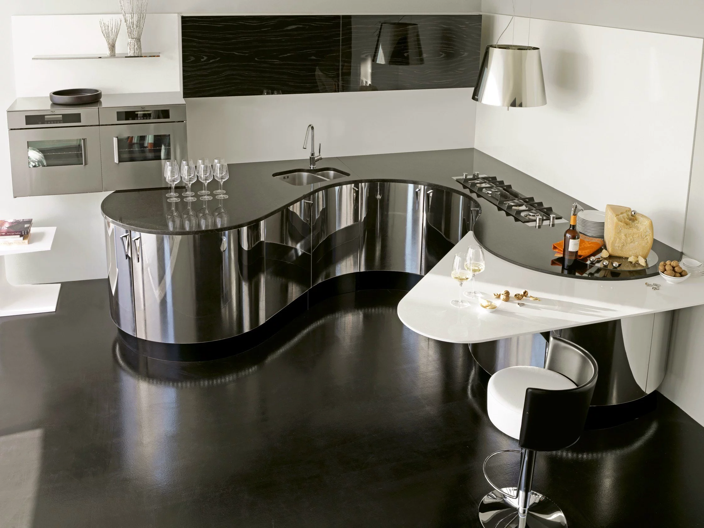 Чувственные изгибы кухни Domina от Aster Cucine покоряют с первого взгляда. Эта мебель заполнит пространство таким образом, чтобы вам было приятно проводить время на кухне, и даже сможет заменить гостиную. Необычная барная стойка примет наиболее подходящую для вас форму.