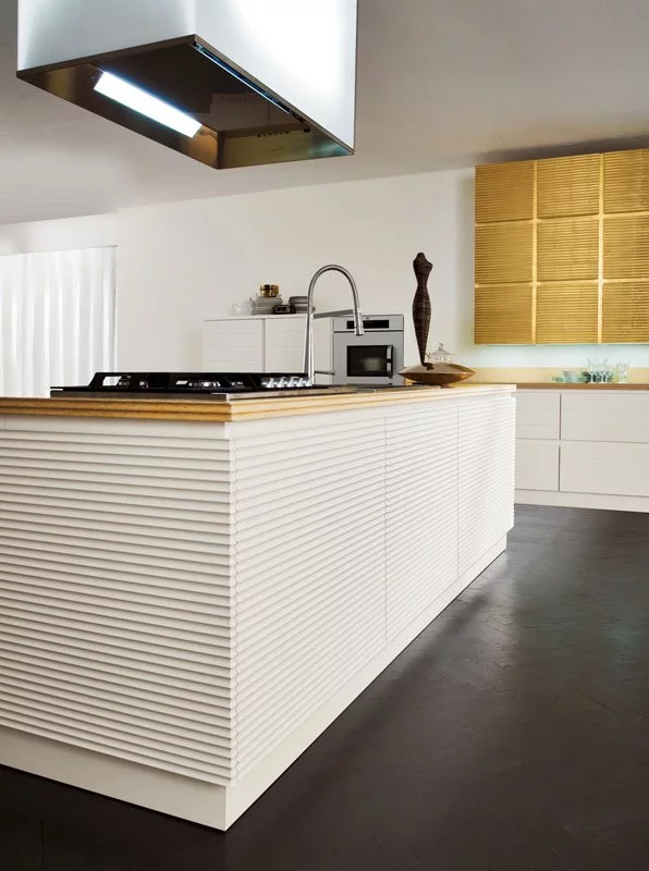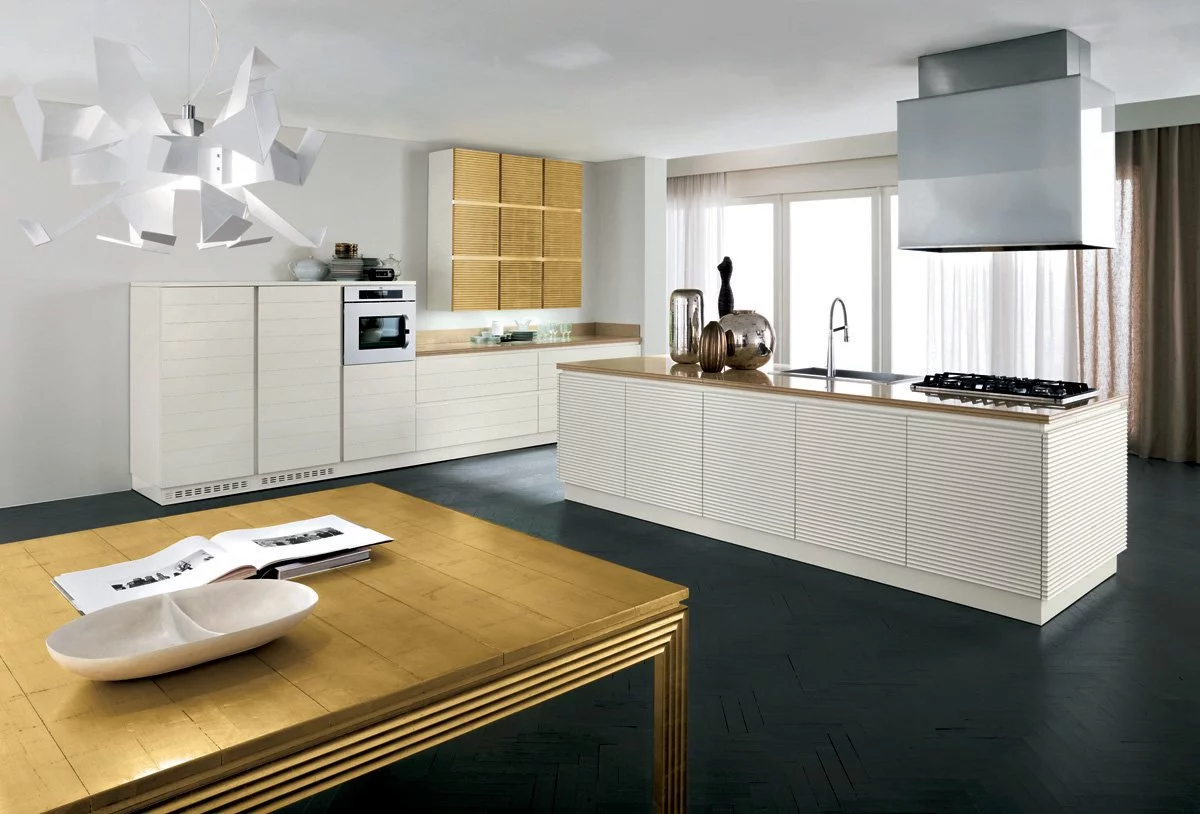 Фасады кухонь из коллекции Century изготавливаются из массива вишни. Модель Century Laccato Bianco предлагает дополнить фактуру древесины молочно-белыми элементами. Гладкий камень рабочих поверхностей максимально близок по цвету к древесине. Декором служат элегантные рельефы на поверхности фасадов, скрытые ручки не нарушают гармонию их рисунка. Встроенная техника и удобные системы хранения позволяют насладиться всеми преимуществами современной кухни.