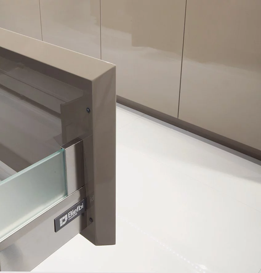 Кухню Murano отличают строгие утончённые линии, практически отсутствие толщины, а также монолитная эксклюзивная конструкция. Для изготовления фасадов, расположенных под углом в 45º к столешнице, используется массив дерева, покрытый несколькими слоями матового или глянцевого лака. В качестве ручек на торцах фасада имеются почти невидимые выемки, которые позволяют удобно пользоваться кухонными ящиками. Столешница изготовлена из кориана, оборудована мойкой и смесителем. Благодаря современным электродоводчикам обеспечивается плавное закрытие ящиков. У стеновой панели, также выполненной из массива дерева, имеется собственная подсветка.