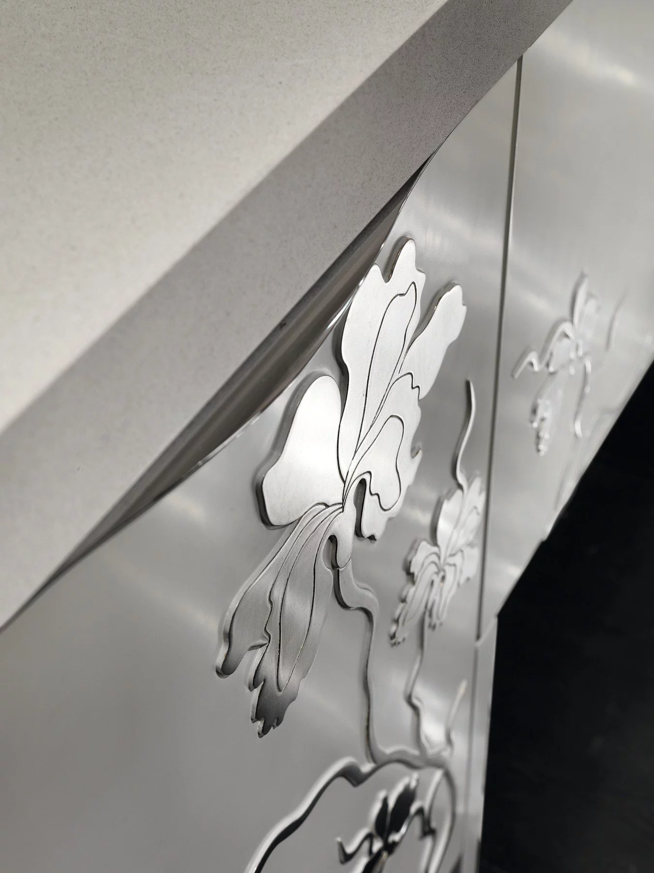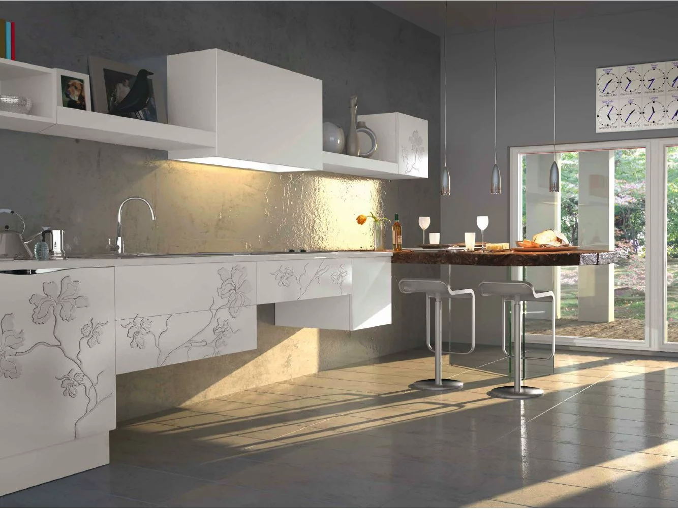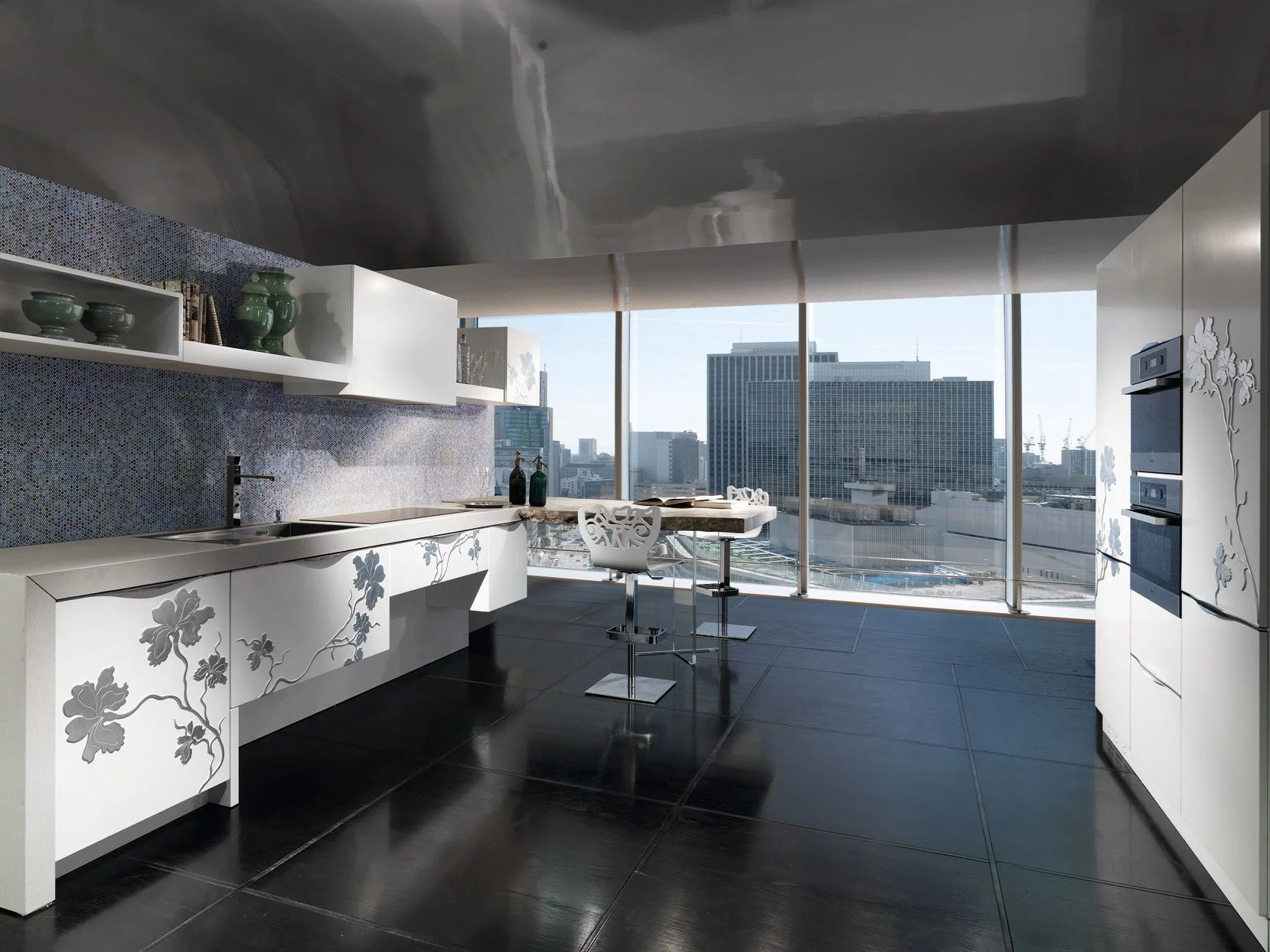 Нежная, романтичная кухня Iris от Bizzotto дарит ощущение простора и свободы, свойственное стилю Liberty. Стилизованные цветки ириса украшают фасады, цветочный орнамент наилучшим образом подчеркивает природную свежесть древесины шиповника. На выбор предлагается несколько вариантов цветовой гаммы: белый в сочетании с платиной, состаренное золото и насыщенный черный браузери. Эта кухня может поддержать разные дизайнерские концепции: модерн, ар-деко и даже богатый колониальный стиль.