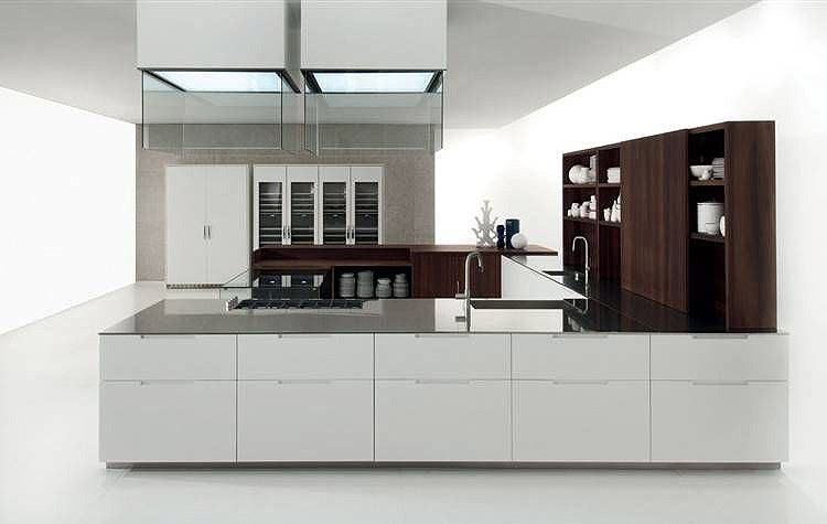 Кухня Duemilaotto от фабрики Boffi — это комплект из островного блока и многофункциональной системы хранения в виде шкафов. Основной ряд модулей может быть выстроен в виде каре. Для столешницы используется глянцевый искусственный камень, нержавеющая сталь — сатин или покрытие из керамической плитки.