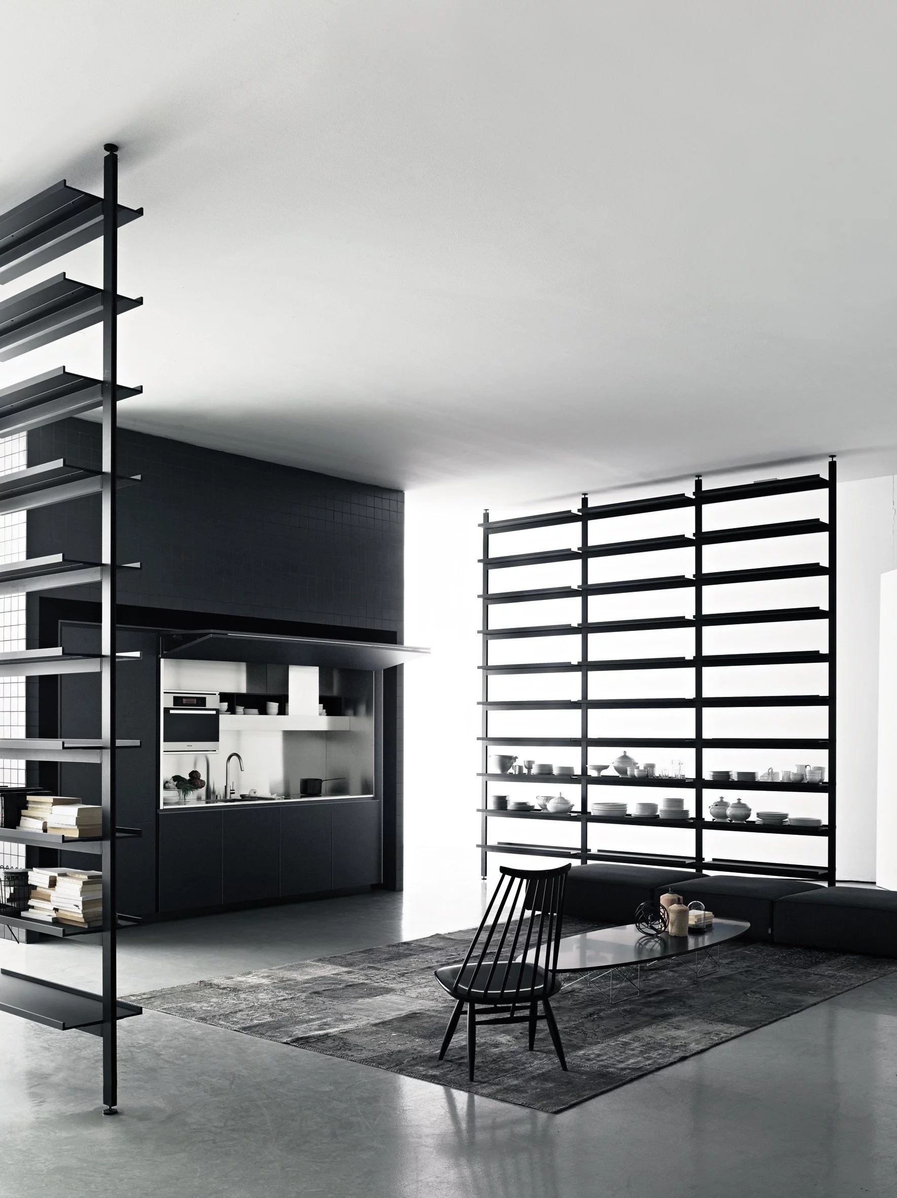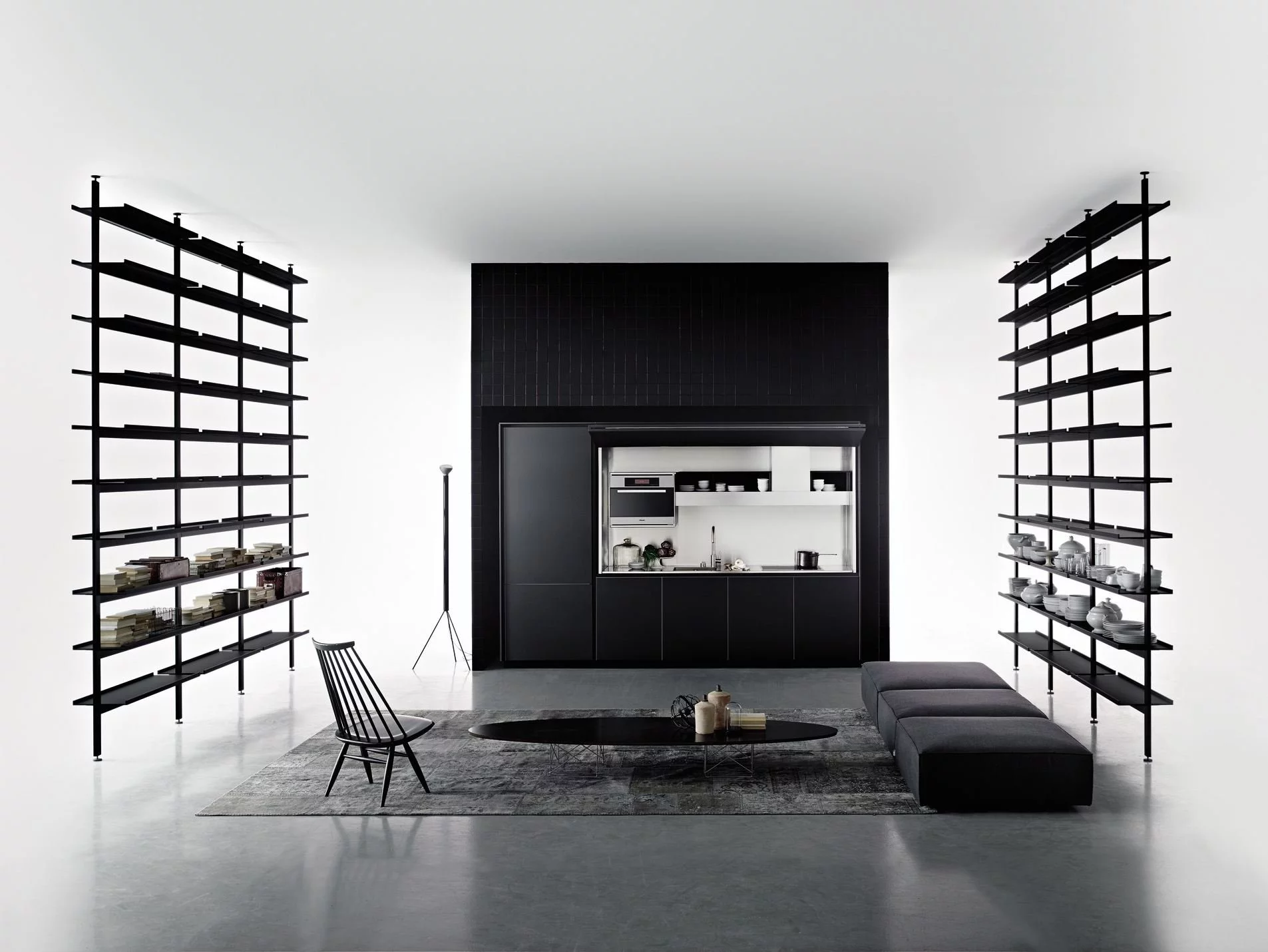 Название On-Off от Boffi как нельзя лучше подходит для этой кухни дизайна Альберто Колонелло. В некоторых переводах ее называют релейной или триггерной кухней, поскольку она в нерабочем положении полностью скрывается за фасадами шкафов, которые целиком крепятся на стене при помощи металлического каркаса.