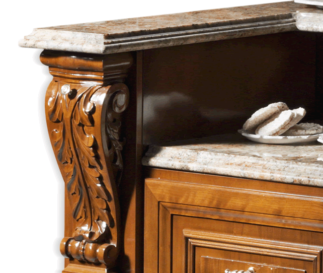 Элитная кухня Badoer, которую предлагает итальянская фабрика Bordignon Camillo, является синонимом истинной «классики». Великолепный проект Badoer полностью изготовлен из массива ценных пород дерева, который покрывается защитным лаком для сохранения первоначального внешнего вида гарнитура на долгое время. Столешница и фартука выполнены из натурального мрамора, а изящная фурнитура ручной работы и искусная лепнина дополняют стильный образ кухни. Навесные шкафы имеют интегрированную подсветку, которая способна создать романтическую атмосферу и расширить представление о кухне. Фабрика Bordignon Camillo заботится о вкусах и желаниях своих заказчиков, поэтому предусматривает различные варианты комплектации кухни Badoer, о которых можно узнать у наших специалистов.