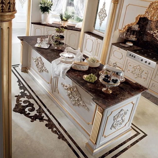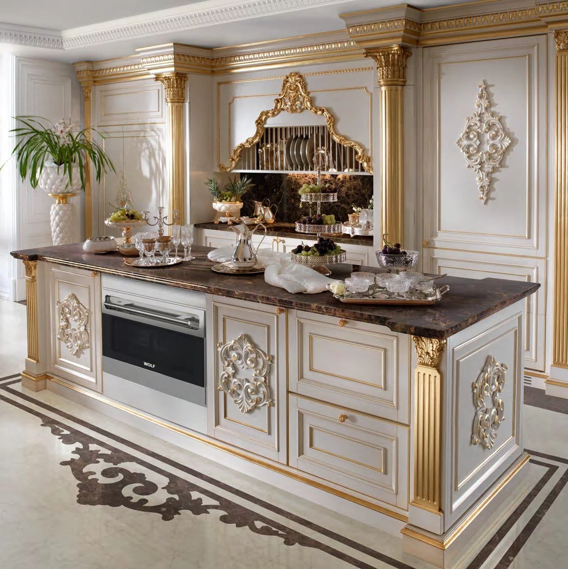 Великолепная кухня Opera итальянской фабрики Bordignon Camillo стала образцом по-настоящему роскошной классики. Вдохновлённые атмосферой Римской оперы дизайнеры Bordignon Camillo решили воссоздать её в проекте, который буквально наполнен элегантным золотом и большим количеством деталей ручной работы. Основным материалом для кухонного гарнитура выступает массив элитной породы дерева, искусно украшенный высококачественным стеклом и благородными металлами, а поверхность покрыта лаковым глянцем. Ещё одна важная особенность модели Opera от Bordignon Camillo состоит в её практичности и эргономичности: вся необходимая бытовая техника продуманно интегрирована в изящный гарнитур.