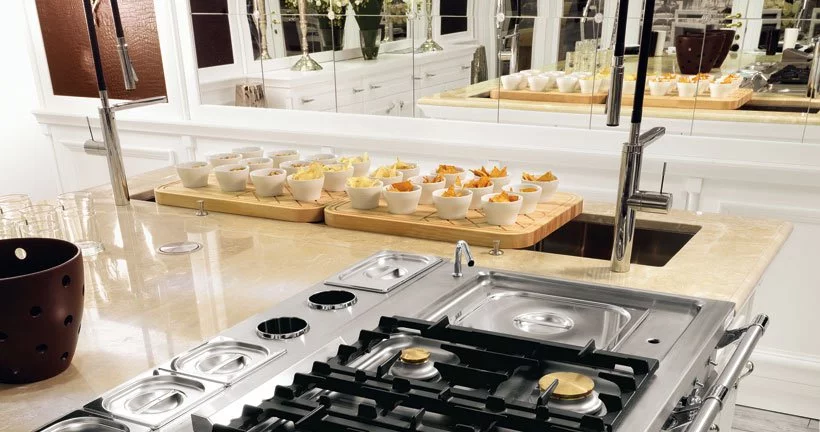Marmola создана в сочетании опыта мастеров, сдержанной элегантности и самых передовых технологий. Эта кухня удачно впишется как в роскошный исторический, так и более современный интерьер. Центральный остров создается из высококачественных материалов с применением эксклюзивных отделок. «Невесомые» стеклянные фасады создают яркое и великолепное окружение.
