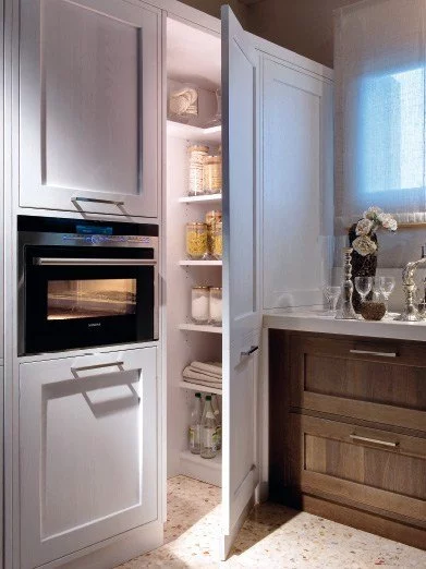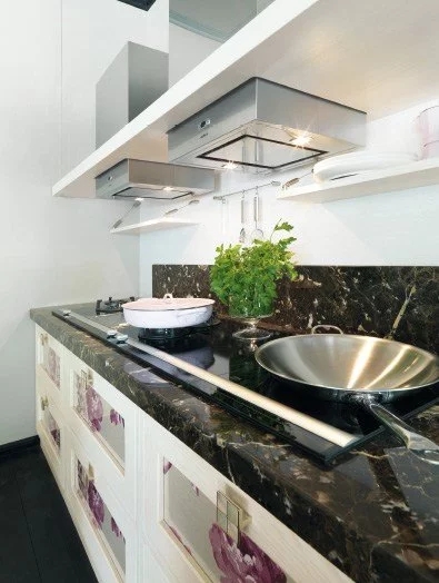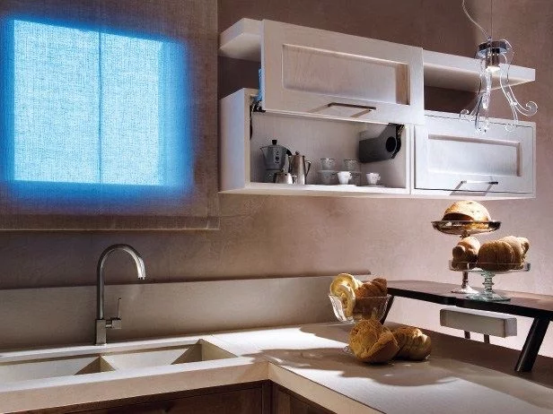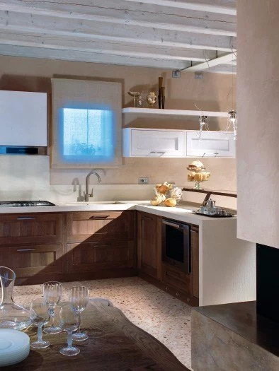 Young and dynamic this kitchen is born to furnish bright environments. Its sunny line creates a natural yet elegant atmosphere. In perfect harmony with design, from drawers on runners to the hood, combining the brightness of metal with the warm of solid wood.