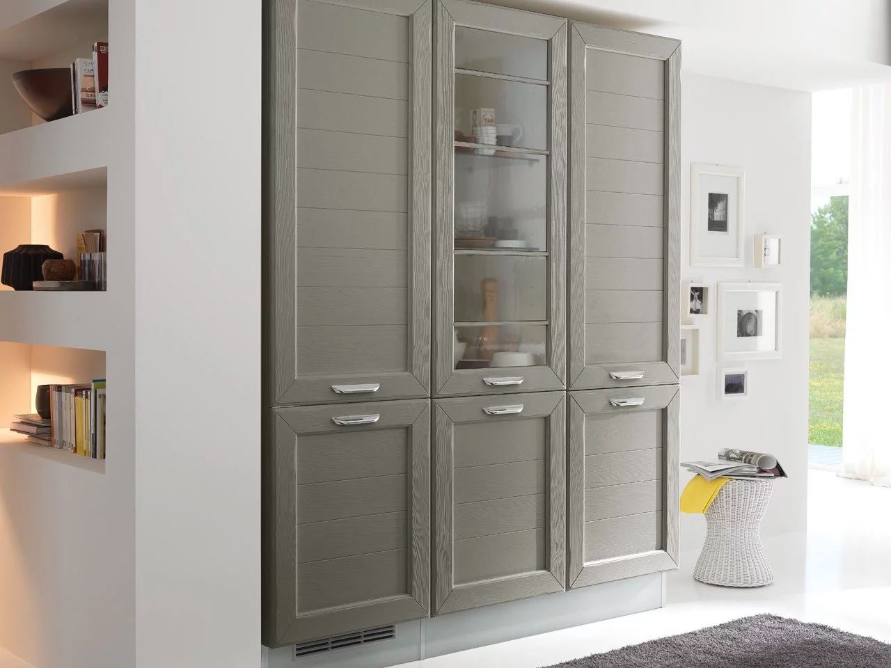 Фасад выполнен из ясеня. Доступны варианты с закаленным или сатинированным стеклом. В качестве отделки используется краска, грунтовка, матовая поверхность или открытые поры. Наличие нескольких цветовых решений позволит в точности подобрать кухню Lube Cucine под индивидуальный проект. Более подробную информацию вы можете узнать у наших менеджеров.