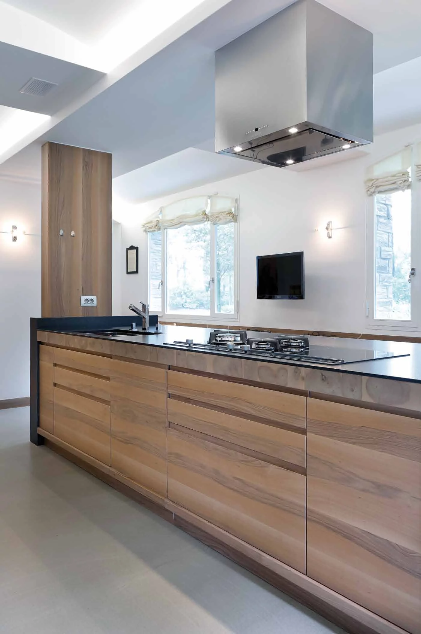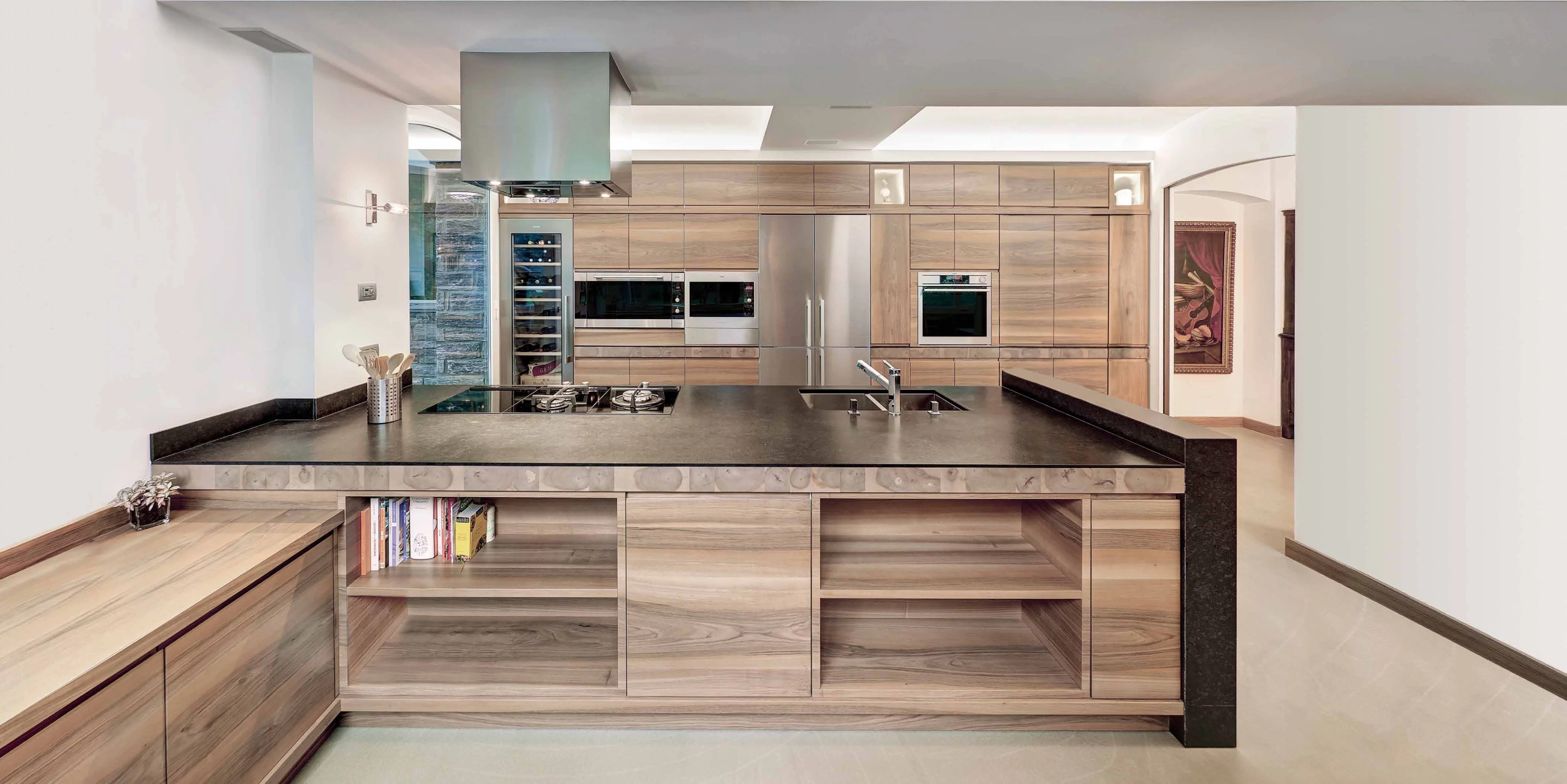 Кухня Chiavenna фабрики Del Curto — несет в себе тщательно продуманные формы, четкие линии, а так же шпон ореха выложенный в различных направления. Всё это придаёт данной модели уникальный характер, позволяющий ей вписаться не только в любой разработанный по индивидуальному заказу интерьер кухни, но и в гостиную. В данной модели производитель отказался от использования стандартных ручек, а применил скрытые ручки Gola. Вся кухня, включая и каркасы выполнены из экологически чистого массива. На торцах ящиков возможно выполнить инкрустацию в форме логотипа фабрики.