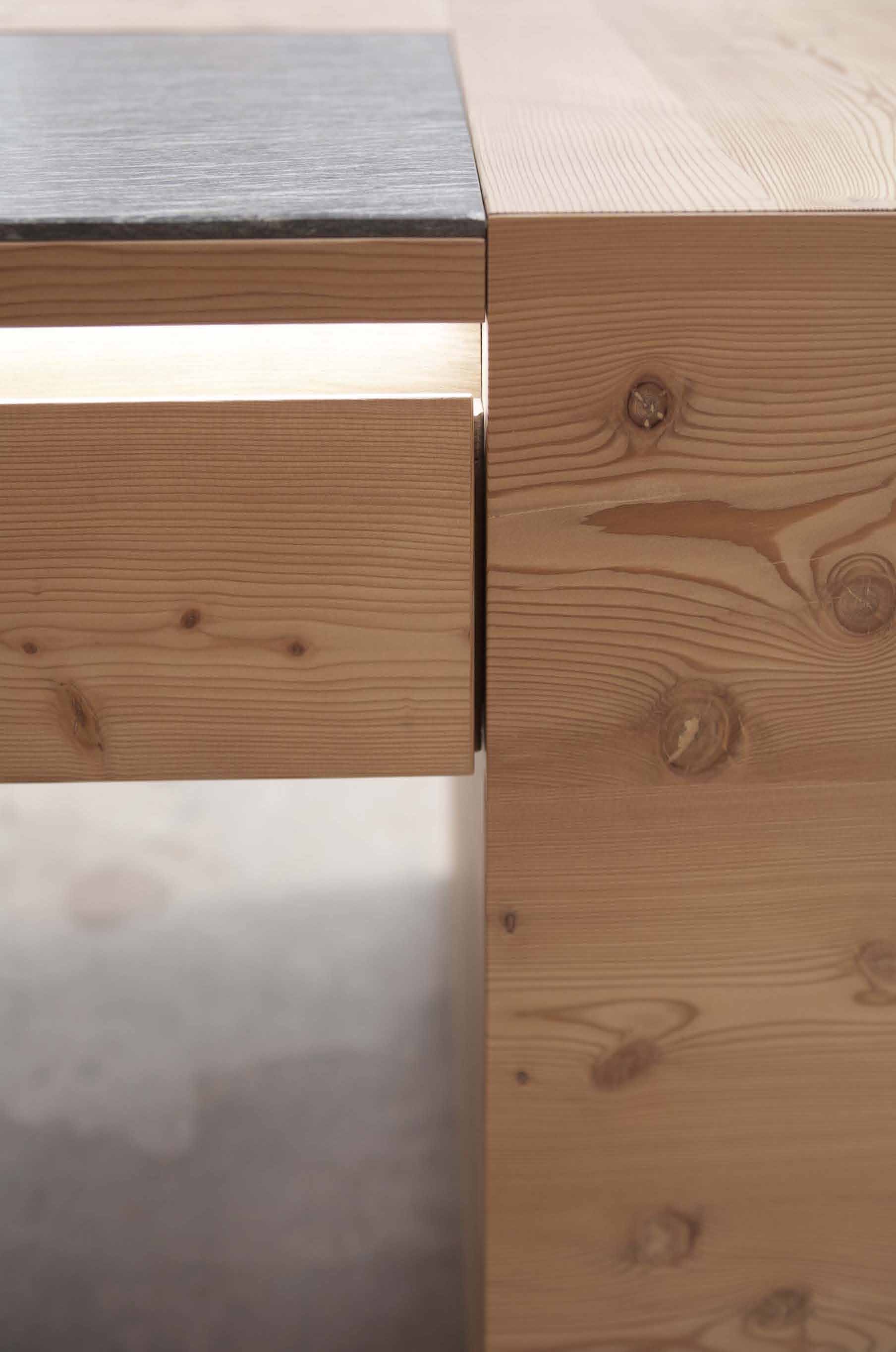 Кухня с архитектурным характером: строгие линии и прямые углы, тщательно продуманные пропорции, идеально сочетающиеся друг с другом цельные элементы, создающие геометрически уравновешенную конструкцию. В стандарте производится в 4 вариантах шпона. Все фасады и каркасы выполняются исключительного из наборного массива. Производится индивидуально под заказчика. Фурнитура — топовая линейка Blum.