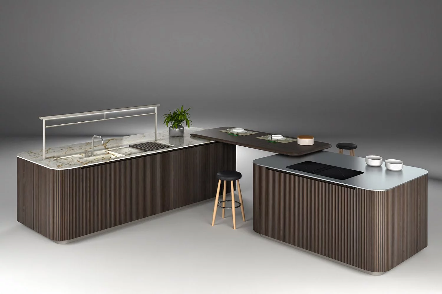 Кухня Sign Round доступна в разных конфигурациях, что позволяет подобрать решение как для компактных помещений, так и для просторных интерьеров. Модули можно комбинировать в зависимости от планировки и потребностей пользователя.