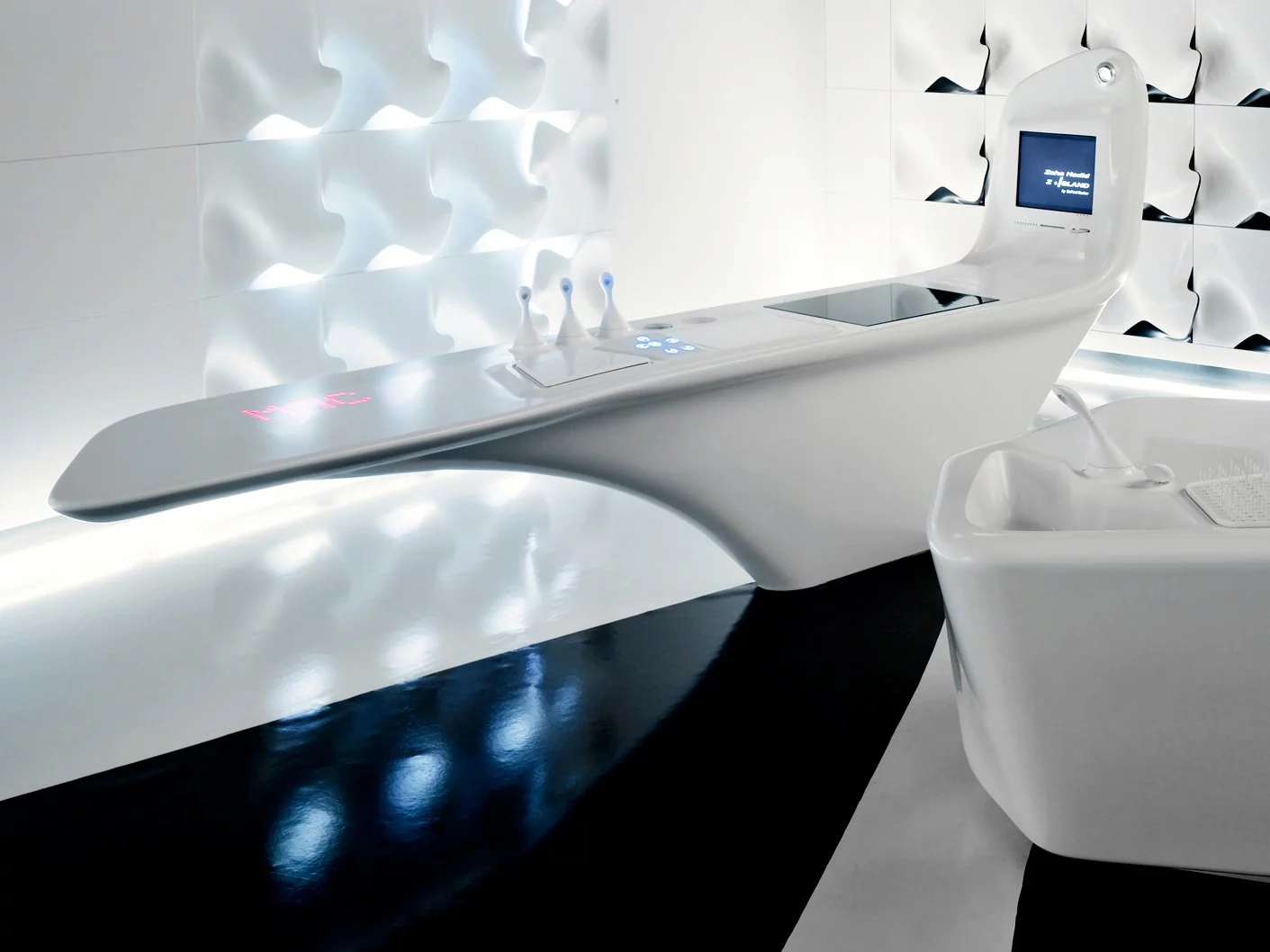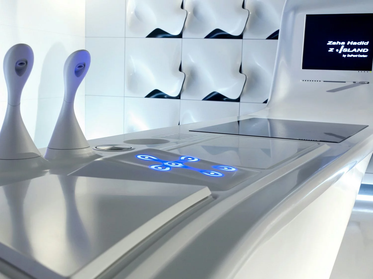 Хотите знать, как выглядит кухня будущего? Фабрика Ernestomeda представила своё видение футуристичного дизайна — коллекцию Z.Island. Futuristic Kitchen. Белая глянцевая поверхность, светодиодная подсветка сенсорных кнопок и нестандартные, закругленные формы напоминают интерьер космического корабля.