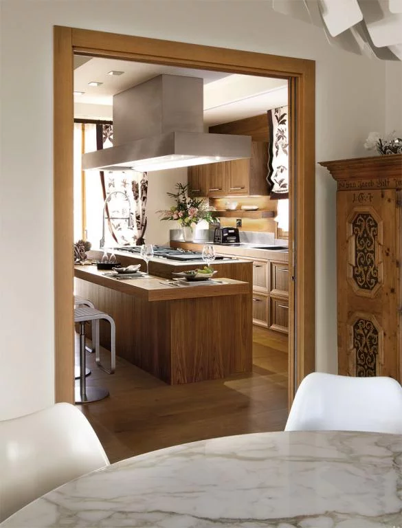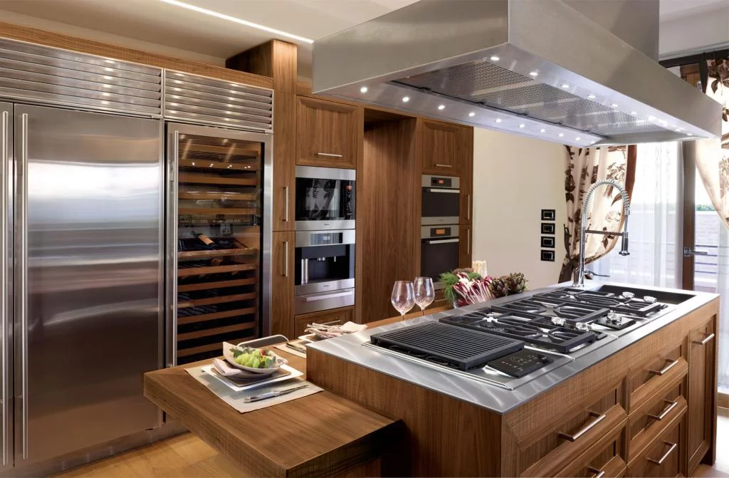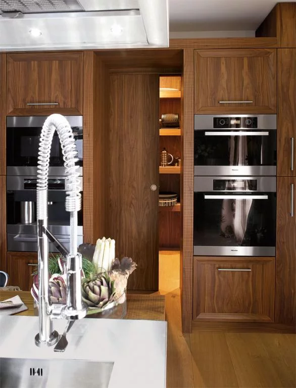 Кухня Emotion Santos от Faoma создана в современном стиле. Каркас и фасады выполнены из натурального палисандра «Сантос». Для столешниц и ручек применяется олово. Этим же материалом отделаны обрамляющие мебель внешние профилированные карнизы. Все элементы кухни являются модульными, поэтому можно создать интерьер по своему вкусу, чтобы создать максимум удобства. Все ящики и корзины, а также бытовая техника размещаются очень эргономично.
