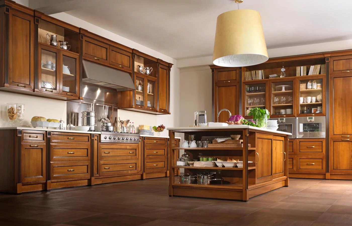 Потрясающая кухня Milano, произведённая фабрикой FM Bottega, изготовлена из натурального массива ореха и гармонично сочетается с дизайном классического интерьера.