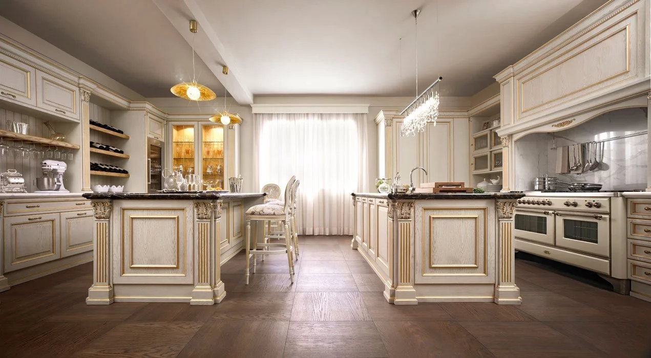Эффектная итальянская кухня Roma с ярким акцентом благородства — одна из моделей классических гарнитуров фабрики FM Bottega d'Arte.