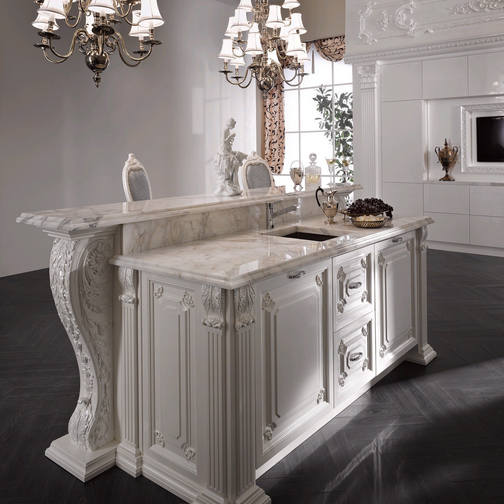 Вы без ума от античной культуры и искусства? Тогда вам обязательно понравится по-королевски роскошная кухня Artica от итальянской фабрики Francesco Molon. Модель украшена богатой резьбой ручной работы, которая имитирует лепнину. Системы хранения декорированы эксклюзивными колоннами и капителями, а фасады украшены эстетичной накладной резьбой.