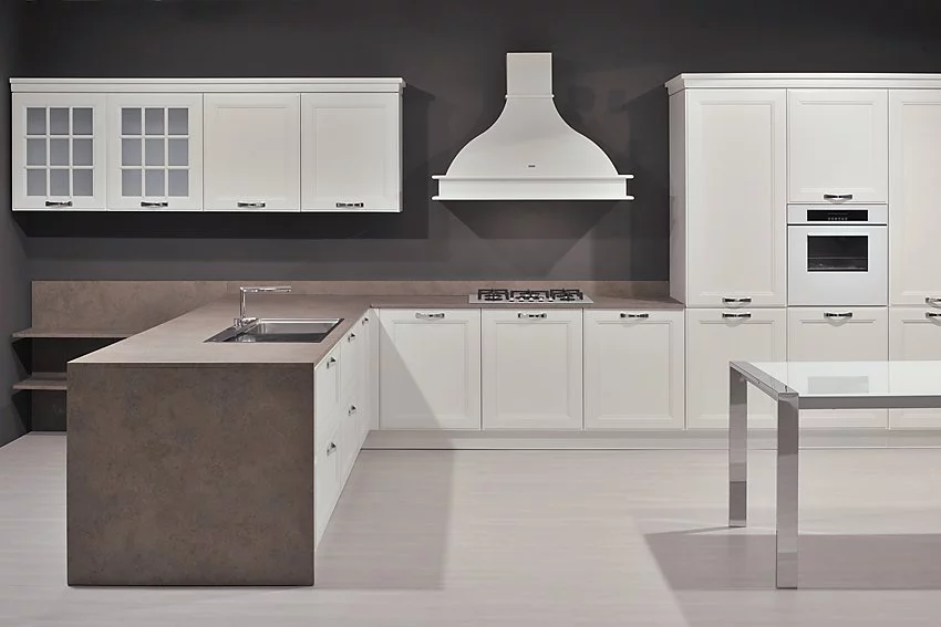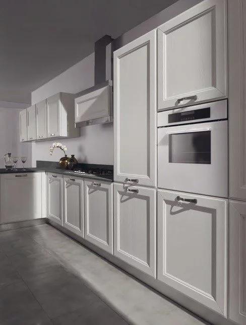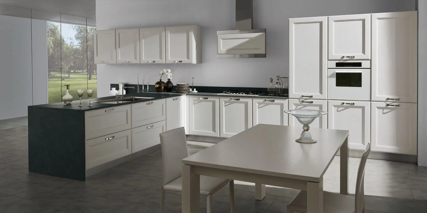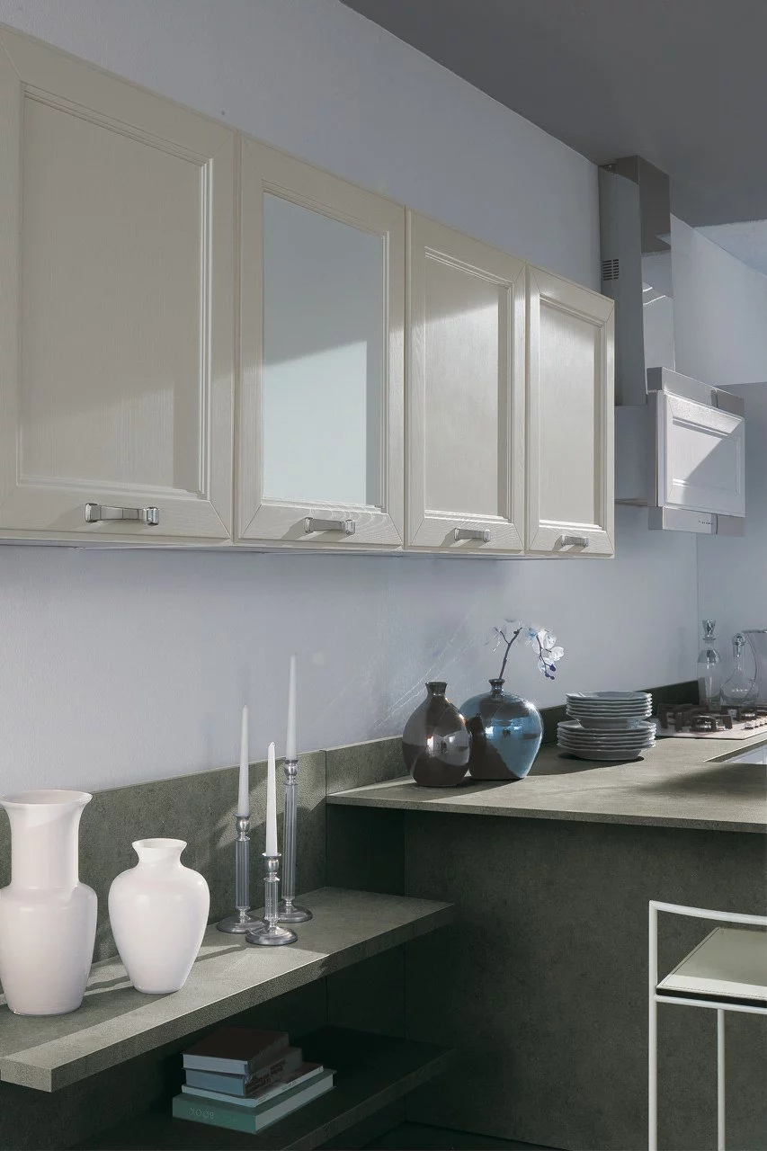 Аккуратная и лаконичная кухня Kate итальянской фабрики GD Arredamenti выполнена в классическом стиле. Изготавливается конструкция из экологичного и прочного натурального ясеня. Кухни Kate состоит из пропорциональных модулей, сочетающих широкие и узкие вместительные блоки, предполагающих размещение встроенной бытовой техники. Дверцы фасадов имеют толщину 24 мм и декорированы резным обрамлением. Отделка выполняется в разнообразных цветах: белом, сером, перламутровым, бежевом. Поверхность гарнитура покрывается водонепроницаемым лаком. Кухня может быть изготовлена как с закрытыми фасадами, так и с декорированием закалённым стеклом.