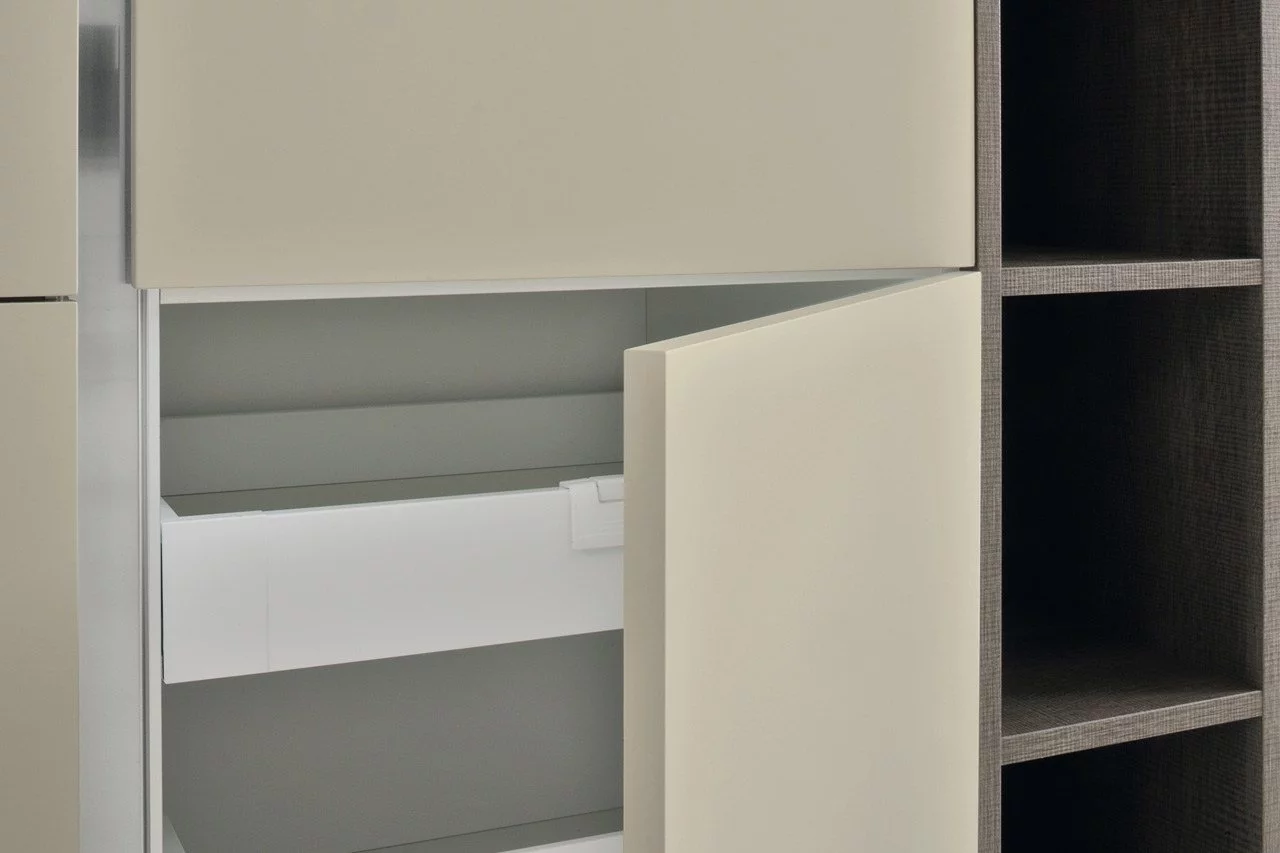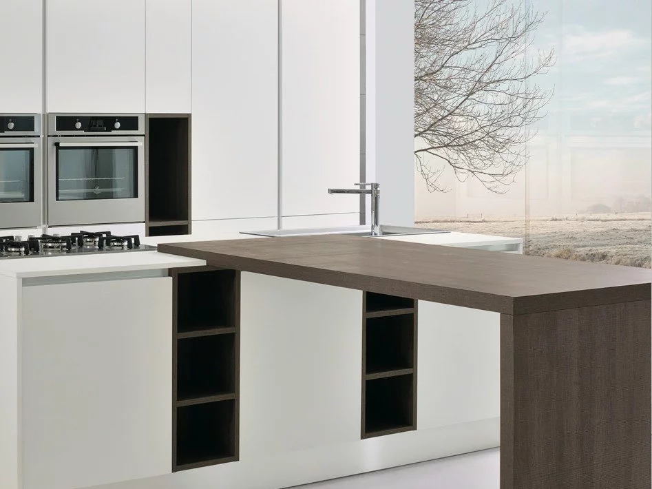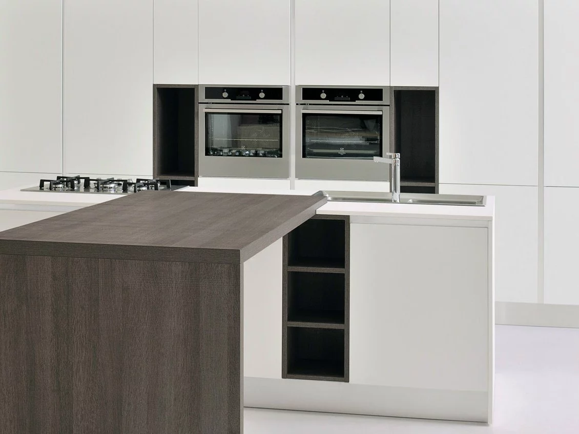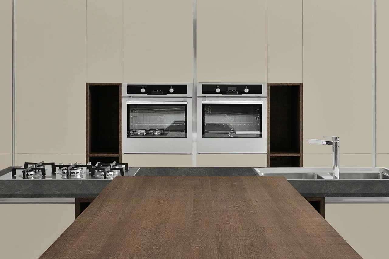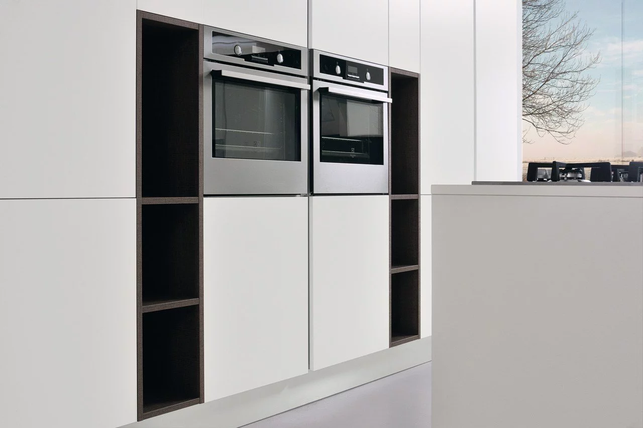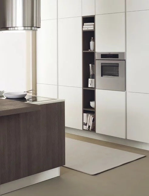 Ультрасовременная кухня Space Alter фабрики Ged cucine наполняет интерьер утончённой роскошью минималистичного дизайна. В этом гарнитуре применяется альтернативная технология, которая предусматривает покрытие водонепроницаемым лаком обработанной меламином поверхности кухни, в том числе и боковых панелей. Эта достойная замена полимерной отделки конструкции обеспечивает данной модели доступность по цене, не теряя при этом первозданного качества кухни Space Alter. Дверцы гарнитура толщиной 20 мм выполнены из натуральных и экологичных панелей, обработанных меламином и покрытым лаком. Модули могут формироваться в зависимости от функциональной необходимости. В отделке применяется 8 оттенков цветовой гаммы.